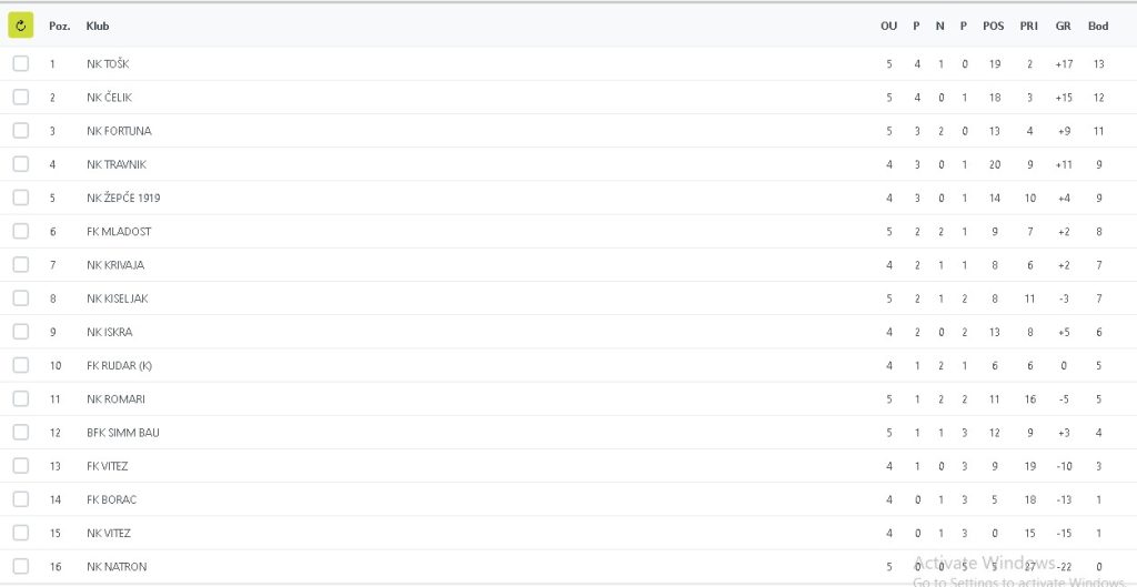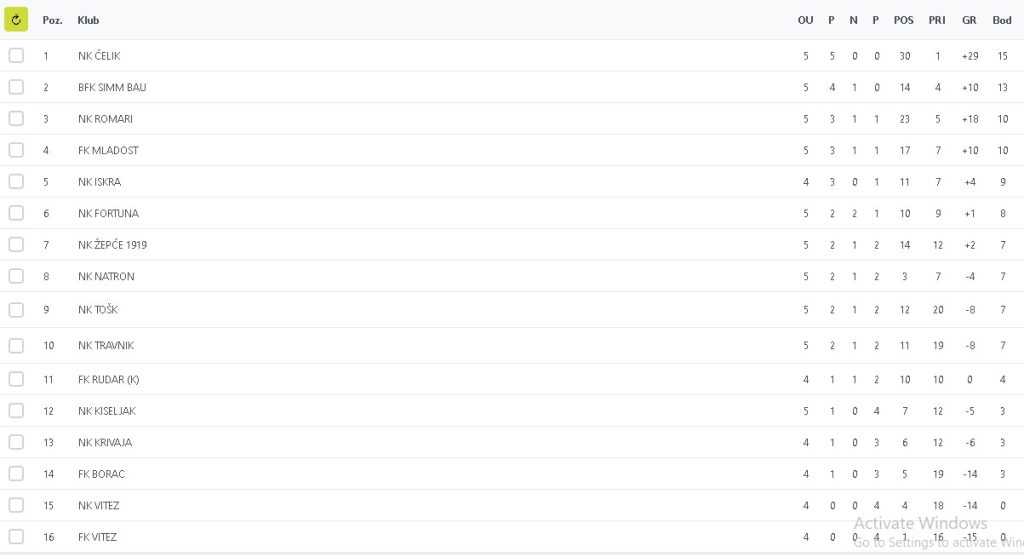 Nakon odigranog petog kola naši momci nalaze se na prvom mjestu na tabeli.