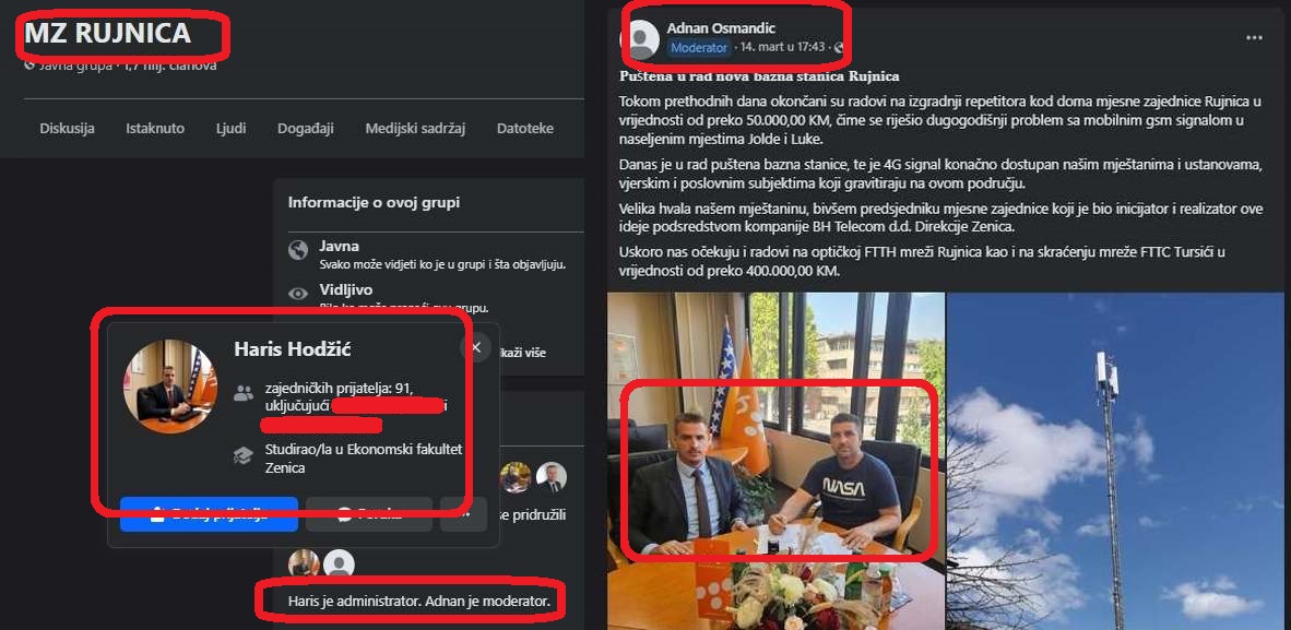 Naime, u dva navrata sredstva dobija Mjesna zajednica Rujnica. Na stranu što Mjesne zajednice inače nisu nikad bile primatelji sredstava, ono što je paradoksalno jeste da je Hodžić donedavni predsjednik upravo te zavidovićke Mjesne zajednice, a po prikupljenim podacima kompanije Meta (Facebook) i dalje administrira društvene mreže te mjesne zajednice! Sredstva su uplaćena za “projekte”, gle čuda, uoči lokalnih izbora, i to istih onih izbora na kojima je direktor BH Telecoma Direkcija Zenica – kandidat SDP-a za Općinsko vijeće u Rujnici, odnosno Zavidovićima.