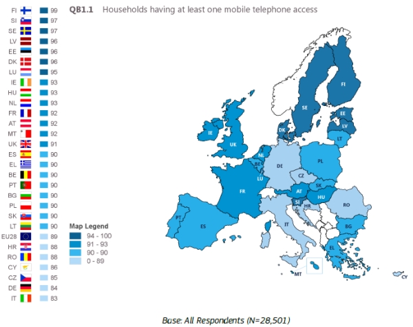 Zadnje istraživanje Eurobarometra po prvi put obuhvatilo je i korištenju međunarodnih komunikacijskih poziva (glasa i poruka) u EU.