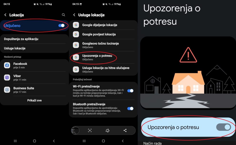 Procedura pokretanja tog sistema vrlo je jednostavna – potrebno je otići u postavke mobitela, odabrati lokaciju, potom usluge lokacije i konačno uslugu ‘Upozorenja o potresu’: Nakon toga, ako usluga sama po sebi nije aktivirana, potrebnu ju je označiti kao aktivnu kao na slici uz ovaj tekst: