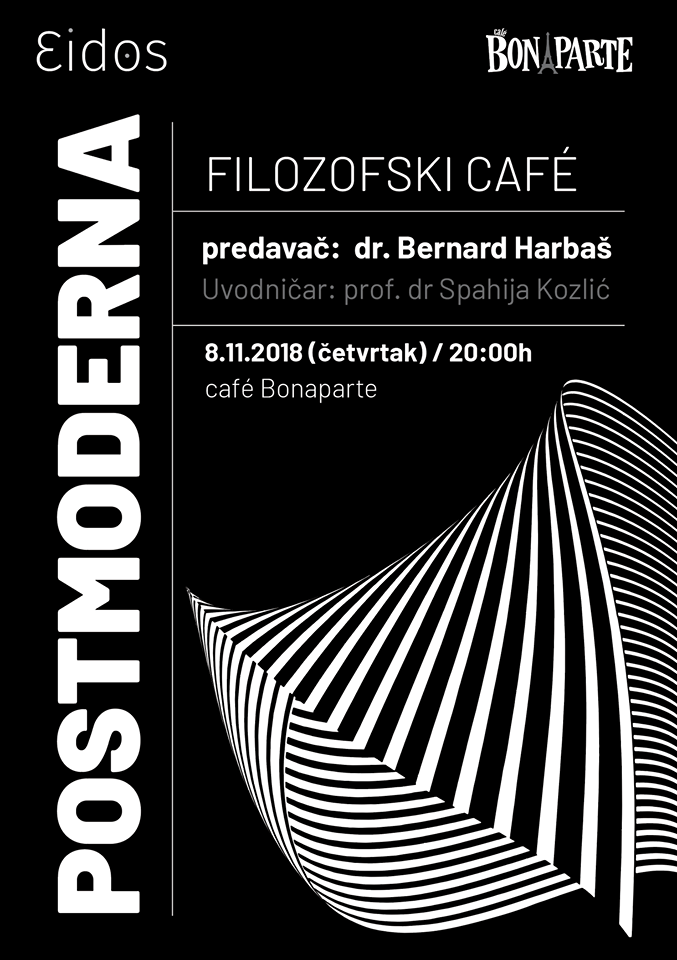 Filozofski cafe: Postmoderna – U organizaciji Udruženja za filozofiju i društveno-humanistička istraživanja “Eidos” sinoć je u kafe baru Bonaparte održana četvrta po redu tribina iz serijala Filozofski cafe.