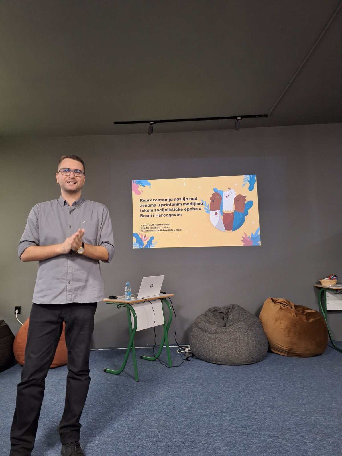 Na Filozofskom fakultetu u Zenici, u četvrtak 4. decembra 2025. godine, održano je javno predavanje i radionica pod naslovom: „Reprezentacija nasilja nad ženama u printanim medijima tokom socijalističke epohe u Bosni i Hercegovini“.