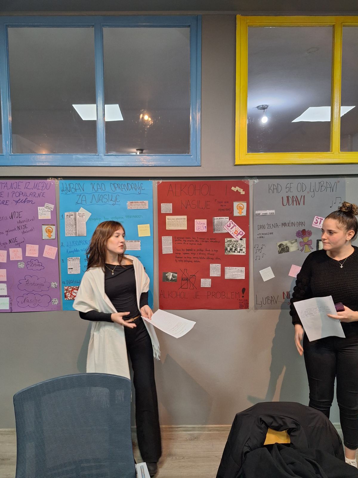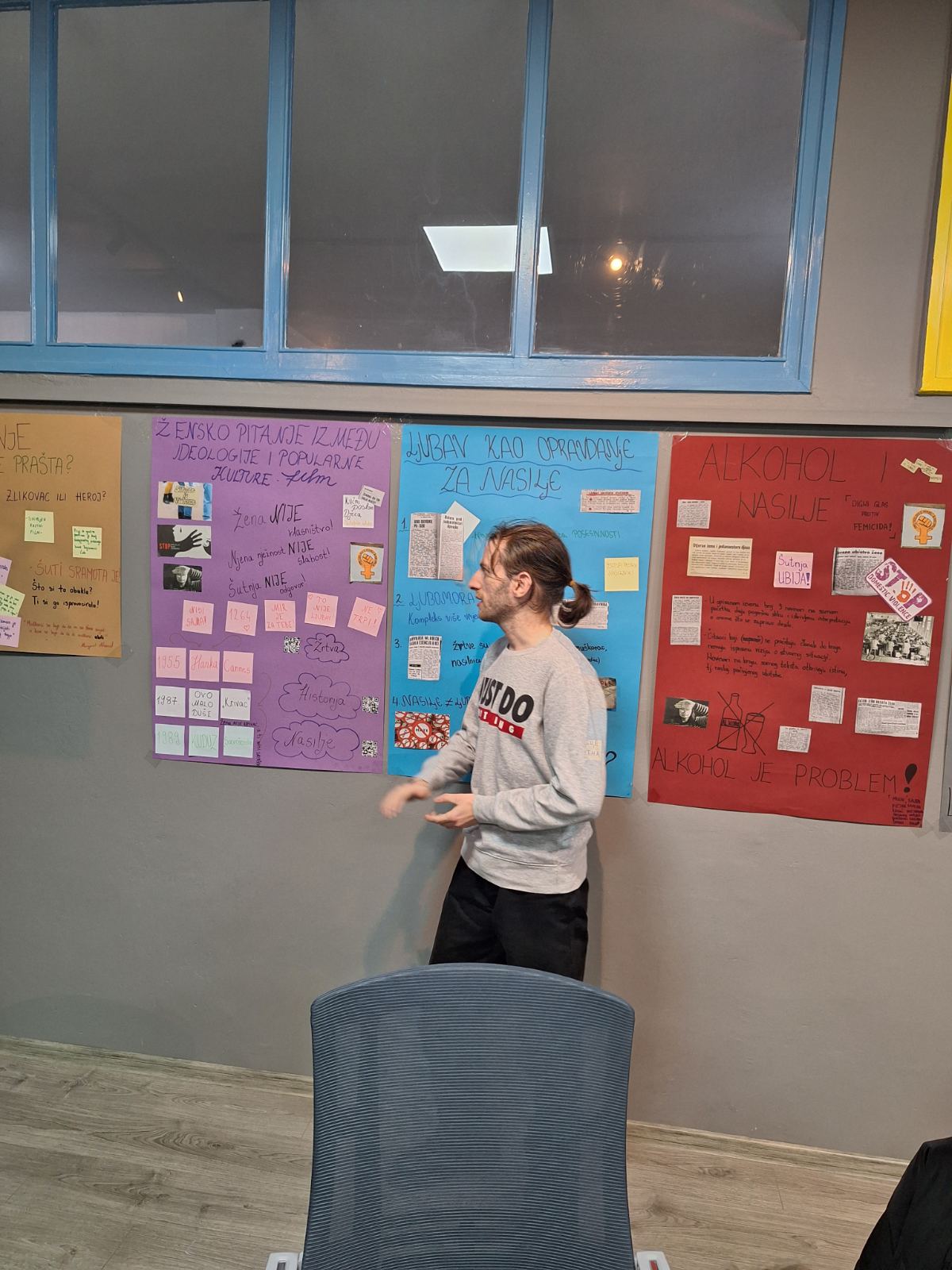 Nakon uvodnog predavanja kojim su učesnice i učesnici radionice dobili odgovarajući kontekst medijskog izvještavanja o nasilju nad ženama u socijalističkoj Bosni i Hercegovini, pristupilo se realizaciji predviđenih aktivnosti na radionici. Učesnici su radili u pet grupa u okviru kojih su analizirali određene historijske izvore poput natpisa iz dnevnog lista „Oslobođenje“ ili sedmičnika „Naša riječ“, ali i kroz analizu tekstova popularnih pjesama ili scena iz bosanskohercegovačkih igranih filmova „Hanka“, „Ovo malo duše“ i „Kuduz“. Cilj je bio utvrditi na koji način su pomenuti izvori tematizirali pitanje nasilja nad ženama, ali i položaj žena u cjelini. Učesnici su svoja zapažanja i zaključke prezentirali putem izložbenih panoa, a potom je uslijedila zanimljiva i dinamična diskusija.