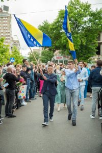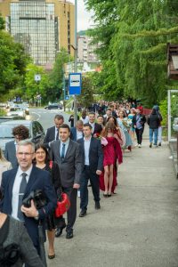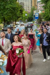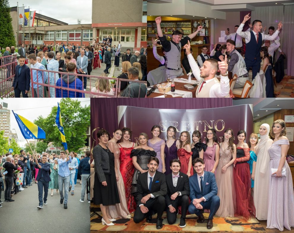 FOTO: 77. generacija maturanata Prve gimnazije u Zenici svečano obilježila završetak školovanja- Maturanti 77. generacije Prve gimnazije u Zenici obilježili su završetak srednjoškolskog obrazovanja tradicionalnim okupljanjem ispred školske zgrade, nakon čega je uslijedio zajednički defile do hotela „Dubrovnik“.