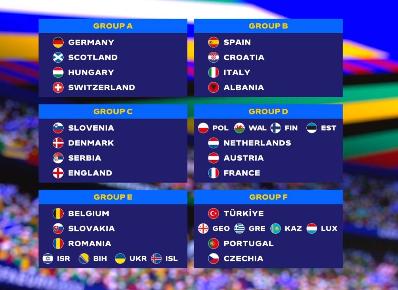 U Hamburgu je večeras održan žrijeb grupa za Evropsko prvenstvo koje se u Njemačkoj igra ljeta 2024. godine. Hrvatska nije imala sreće, dok je Srbija u grupi sa Englezima. Žrijebom je odlučeno da će grupe prvenstva Starog kontinenta izgledati ovako: