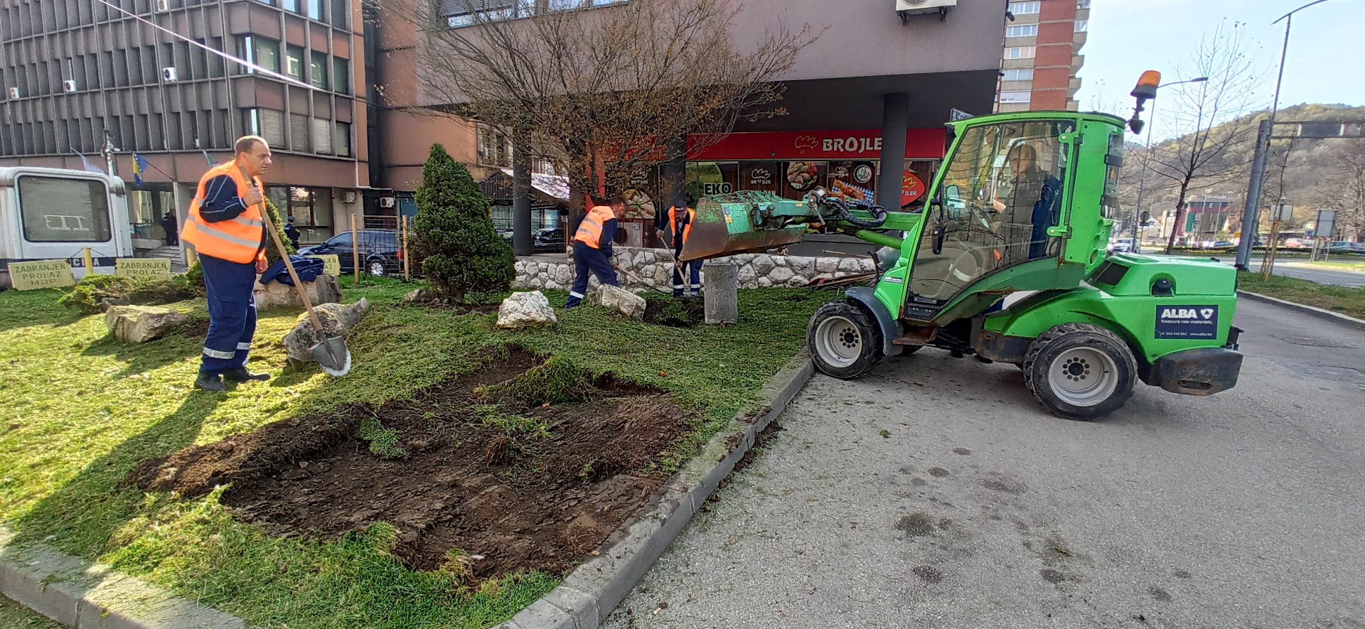 -izvršen dovoz i planiranje ukrasnog kamena na Kružnom toku kod Kina Central, gdje će se također staviti i nova ukrasna kora;