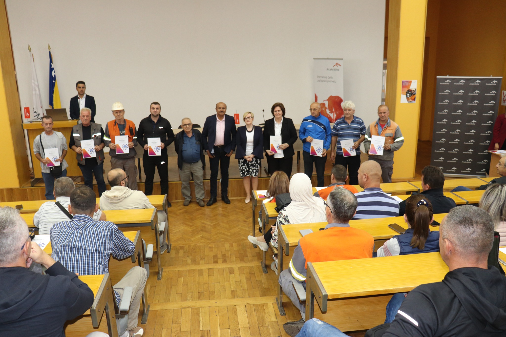 ArcelorMittal Zenica je nagradio 109 radnika za uspješnu realizaciju projekata iz oblasti Zdravlja i zaštite na radu 27. septembra 2023., u Kompaniji je održana Ceremonija dodjele priznanja za uspješnu realizaciju projekata iz oblasti Zdravlja i zaštite na radu, kao i za individualni doprinos na polju unapređenja ZNR.