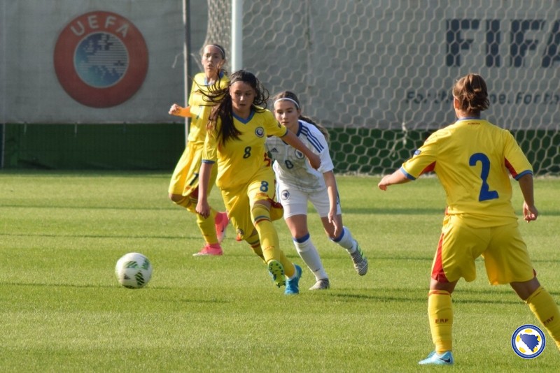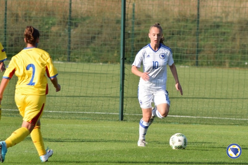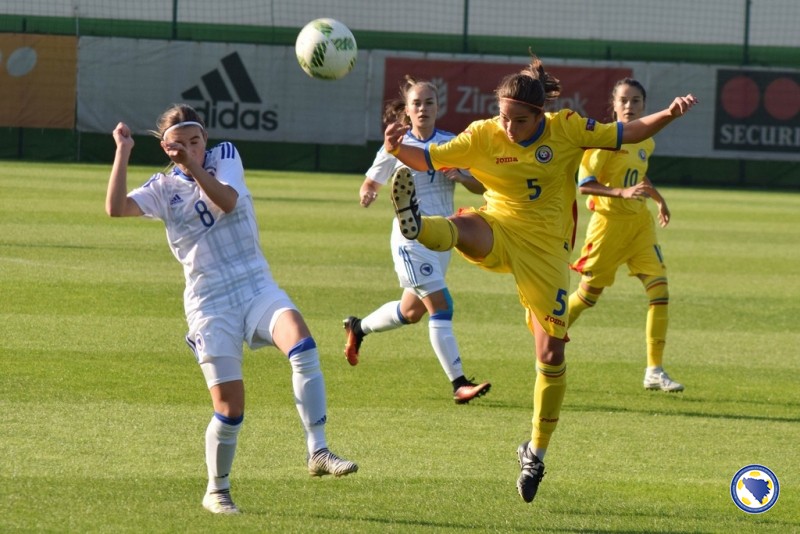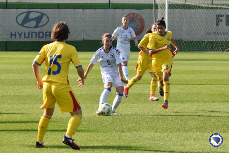 Prvu priliku na utakmici imala je selekcija BiH u 5′. Gavrić je prošla po lijevoj strani i ubacila na peterac gdje je Krajšumović pokušala petom da prevari rumunsku golmanicu Ghioc, koja je ipak uspjela da uhvati loptu.