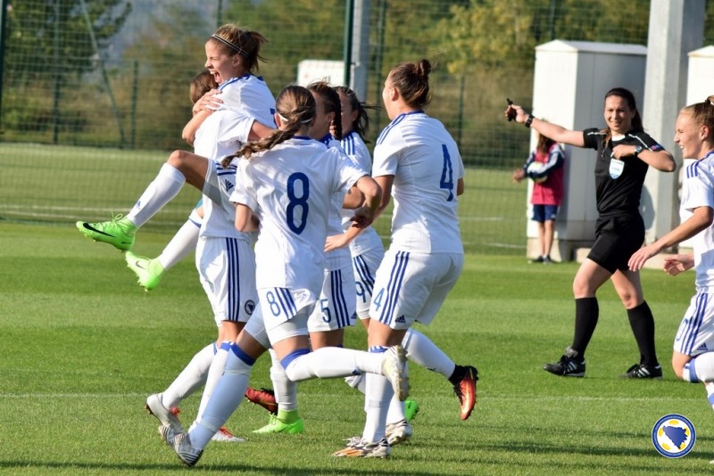 Izabranice Ilije Lucića do prednosti dolaze u 24′. Elma Husić je izvela korner sa lijeve strane, a najviša u skoku bila je Sofija Krajšumović koja glavom loptu šalje u mrežu za 1:0.