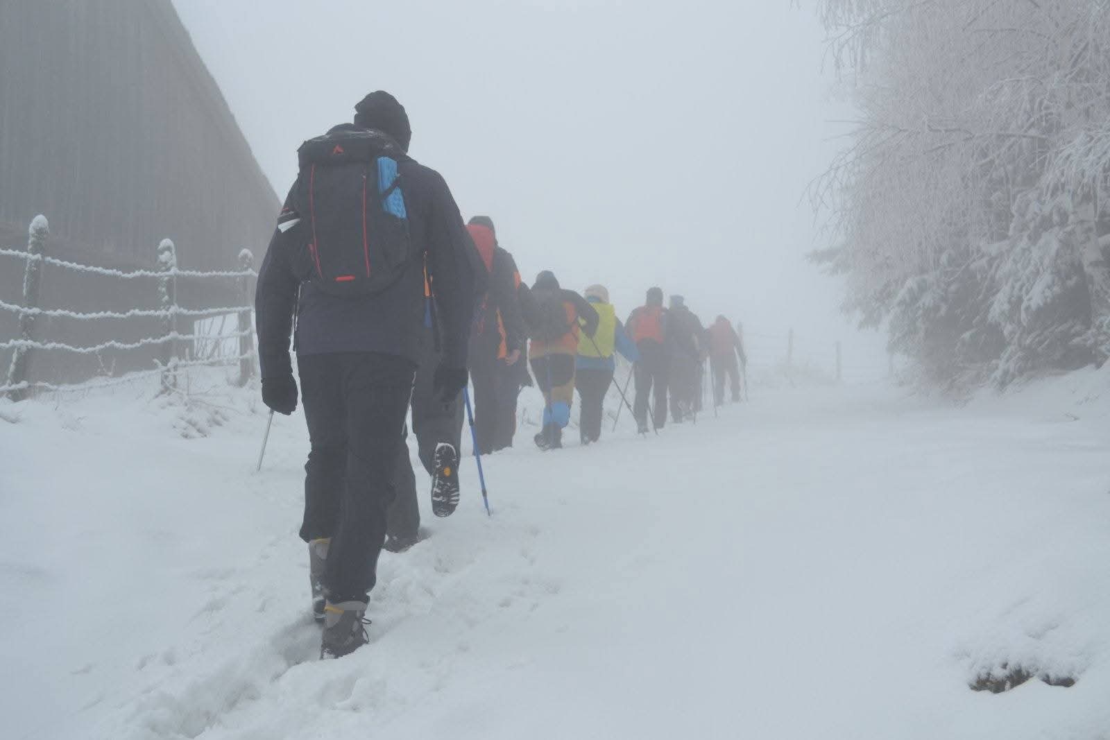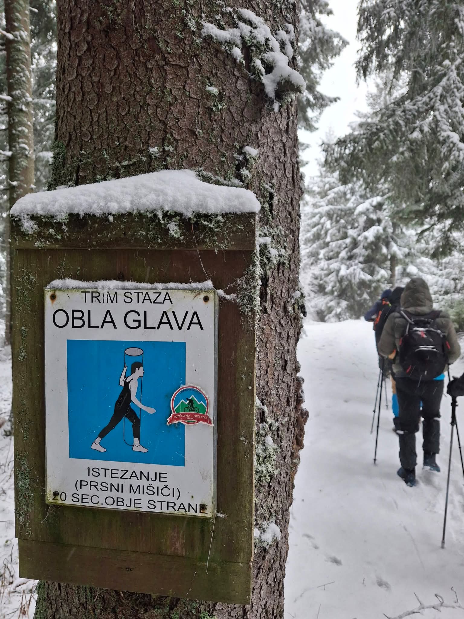 Zbog snijega i magle planirana kraća ruta prema izletištu i vrhu Obla glava izmijenjena je, te je kolona nastavila obilazak preko Zaruđa, prateći žute markacije „Puta zdrave hrane“. Dolaskom na izletište i restoran Wigvam, planinari su nastavili uređenom trim-stazom do vrha Obla glava, gdje je napravljen kraći odmor i doručak.