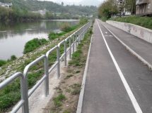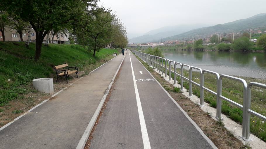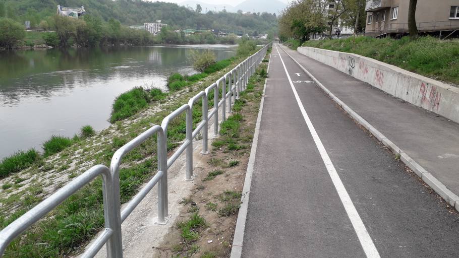 Inače, staza za pješake je široka oko 1,5 metar i izdignuta je 10-ak centimetara od dvosmjerne biciklističke staze, koja je lijepo označena linijom za dva smjera. Sa donje strane šetnice postavljena je prelijepa ograda, a sa gornje strane postavljeno je 20-ak klupa i okrugle betonske kante za smeće, cijelom dužinom šetališta.