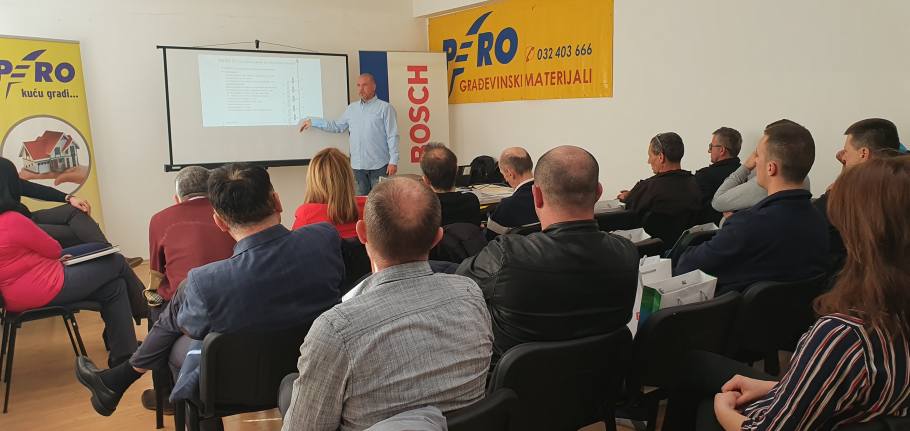 FOTO: Bosch program toplinske tehnike u PERU – Dana 05.03.2020. godine, prezentovan je program toplinske tehnike u „PERU“ Zenica d.o.o., proizvođača Bosch. Predstavnik za Bosch BiH, gospodin Almir Brčić i predstavnik prodaje/prezentator za Sloveniju, Hrvatsku i Bosnu i Hercegovinu, gospodin Nebojša Stojadinović, predstavili su proizvode brenda Bosch, te nova dostignuća u svijetu toplinske tehnike.