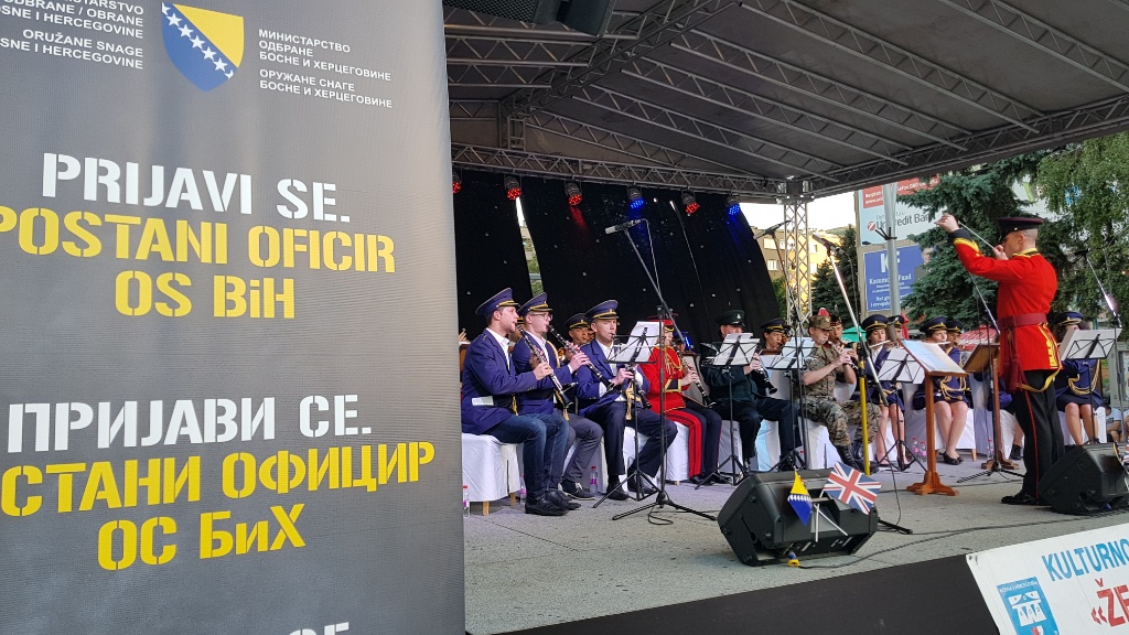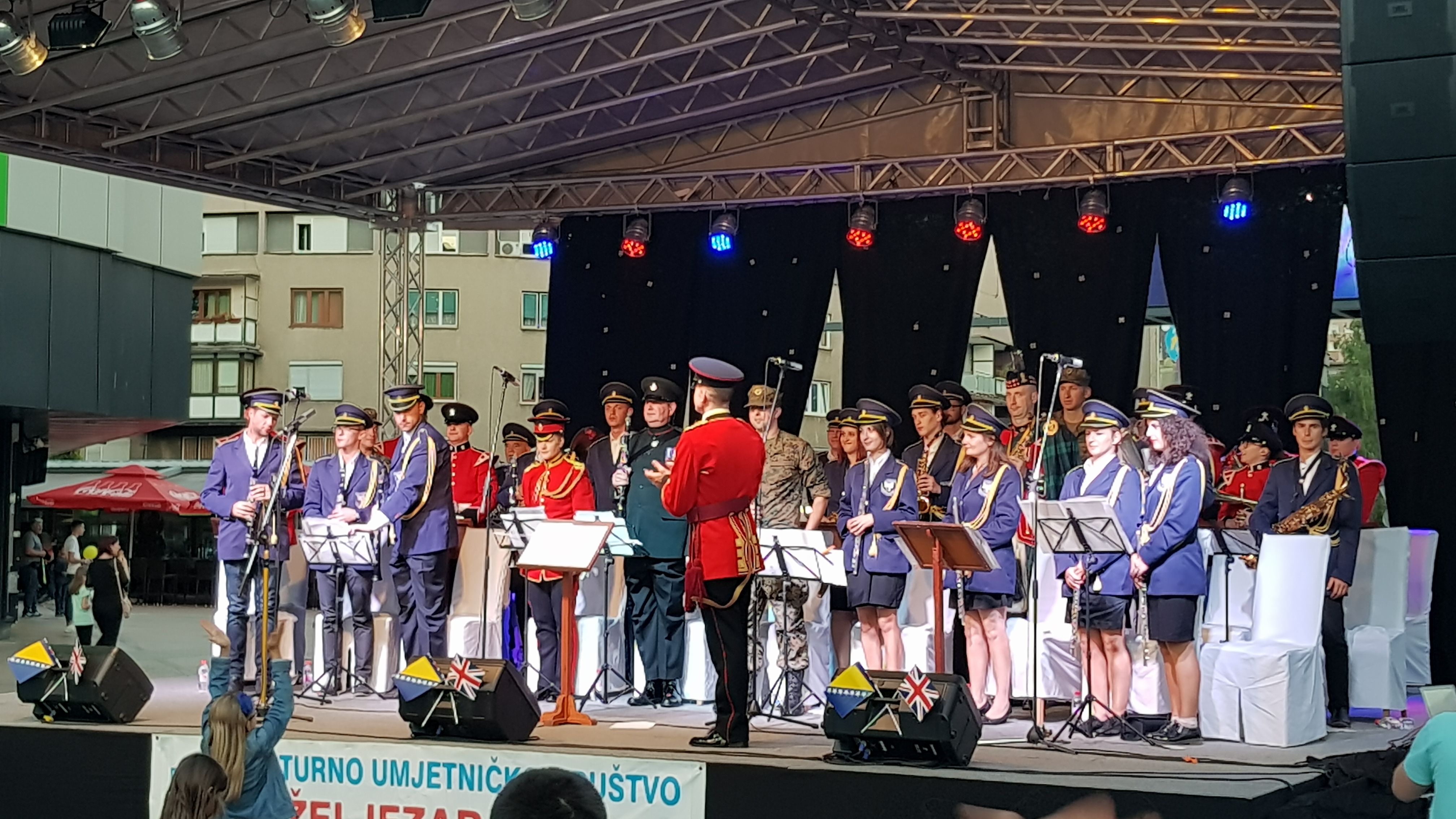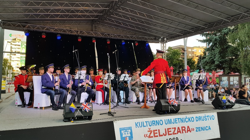 FOTO: Britanski vojni orkestar u saradnji sa orkestrom OS BiH nastupio u Zenici – Čuveni Britanski Vojni orkestar CAMUS (Corps of Army music CAMUS), sačinjen od prvoklasnih muzičara koji nastupaju diljem svijeta, trenutno je u posjeti našoj zemlji, gdje, zajedno sa Vojnim orkestrom Oružanih snaga BiH, nastupa u pet gradova.