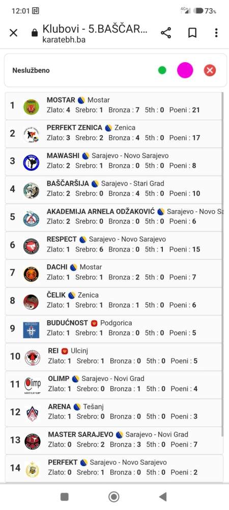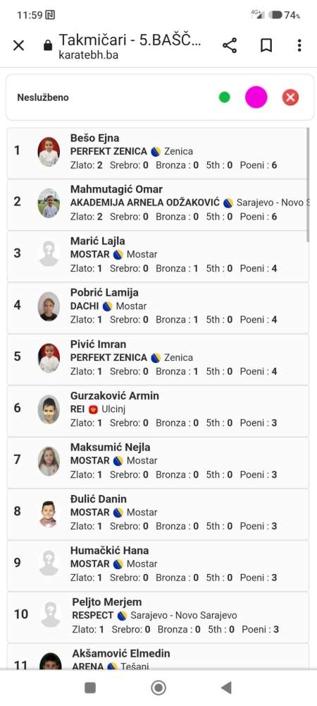 – Ejna Bešo dva prva mjesta i dvije zlatne medalje u kategorijama kate 8 i 9 godina, svojim rezultatima je izborila da bude najuspješnija takmičarka u neslužbenim kategorijama