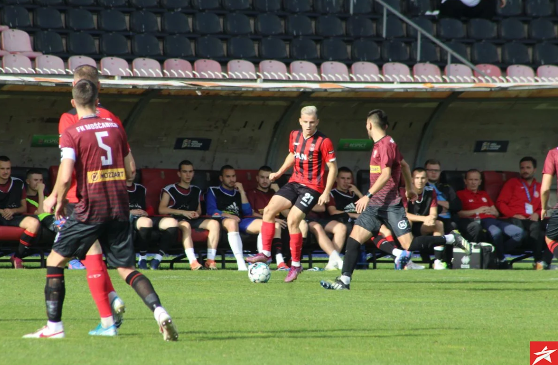 Od prve minute domaćini su krenuli silovito prema golu gostiju, a to im se isplatilo u 13. minuti, pogriješila je gostujuća odbrana, Međuseljac je nesebično asistirao Žuni koji pogađa sa 10-tak metara za vodstvo Čelika 1:0. U jeku napada domaćina, jedanaesterac za goste, Isakoviću je s leđa prišao jedan igrač Mošćanice kojeg nije vidio, a kapiten domaćina pravi faul i glavni sudija pokazuje na bijelu tačku. Loptu je uzeo Mirza Šubo, šutirao po zemlji u donji desni ugao, ali sjajna odbrana domaćeg golmana Durme i ostaje 1:0. Kada se očekivao kraj prvog poluvremena novi gol u mreži gostiju, Durmiš je ovaj put asistent a strijelac je Međuseljac za 2:0 nakon prvog dijela.
