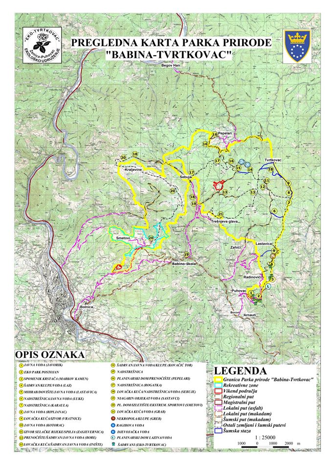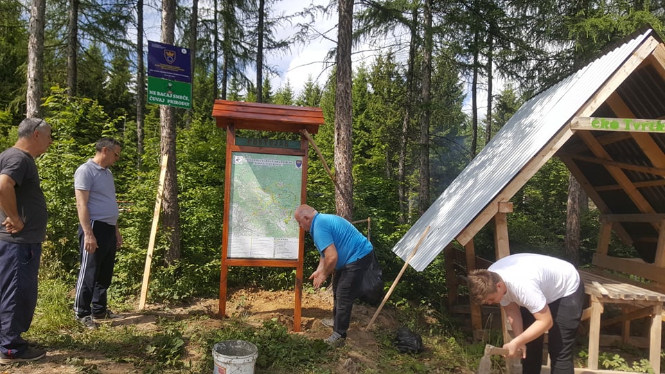 – Izrada i postavljanje reklamnog panoa sa značajnijim lokacijama u Eko parku i šire. Ovo smo nazvali Pregledna karta Parka prirode Babina-Tvrtkovac koju smo postavili na reklamni drveni pano. Izradili smo 2 reklamna panoa i jedan smo postavili u selu Puhovac, a drugi smo postavili kod malonogometnog stadiona u „srcu“ Eko parka Postojan. Namjera nam je da ovu Preglednu kartu dopunjavamo sa novim postojećim i budućim sadržajima ovog buduće Parka prirode.