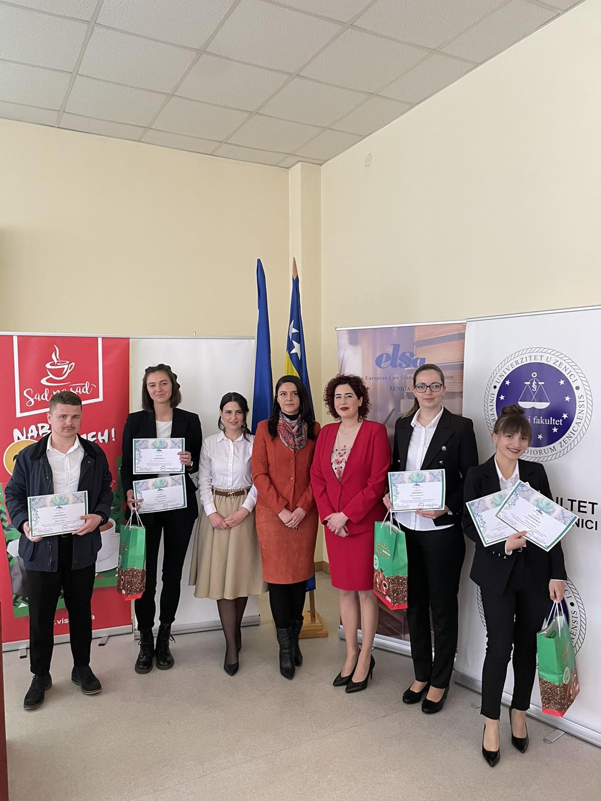 Pobjednik simulacije suđenja je tim respondenata kojeg su činile Sedina Karić, studentica druge godine i Elmir Smriko, student druge godine dok je za najbolju govornicu izabrana Hana Kulović, studentica druge godine Pravnog fakulteta u Zenici. Posebno nam je zadovoljstvo što smo na ovoj akademskoj manifestaciji imali priliku ugostiti maturante Prve gimnazije u Zenici i Mješovite srednje škole u Zenici koji su zainteresirani, a sada i motivisani za studij prava na Pravnom fakultetu Univerziteta u Zenici.