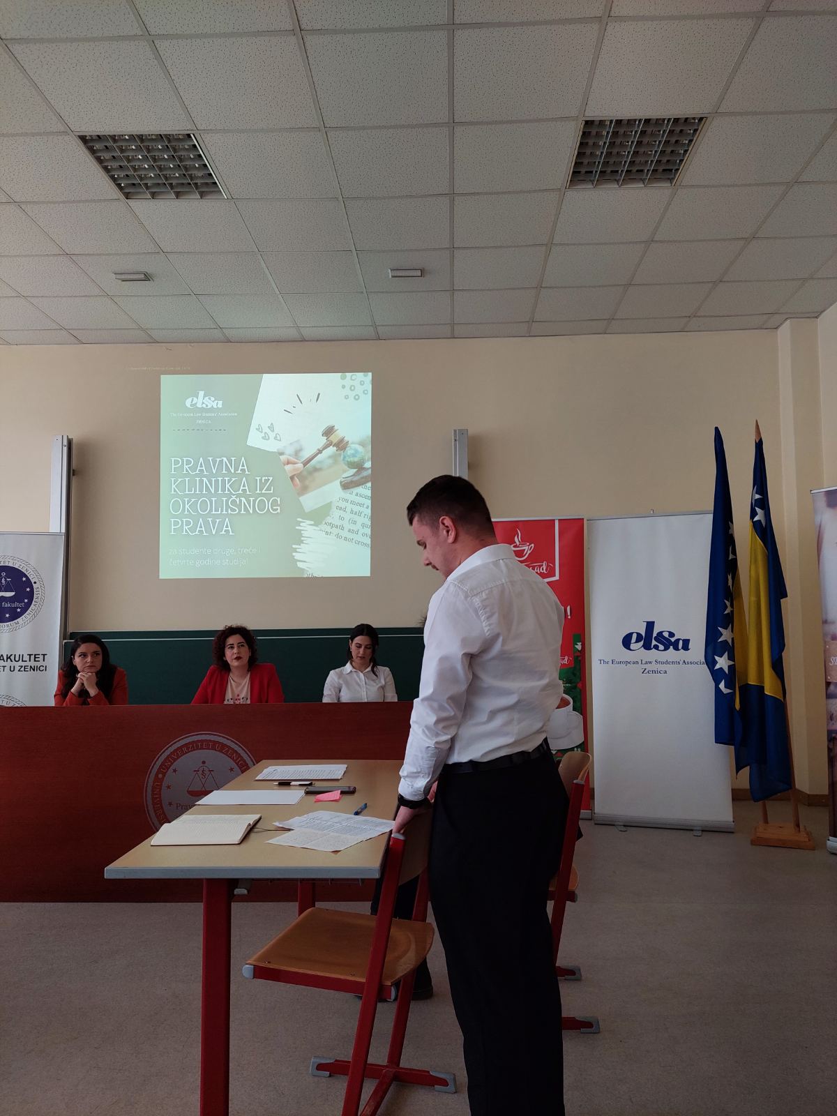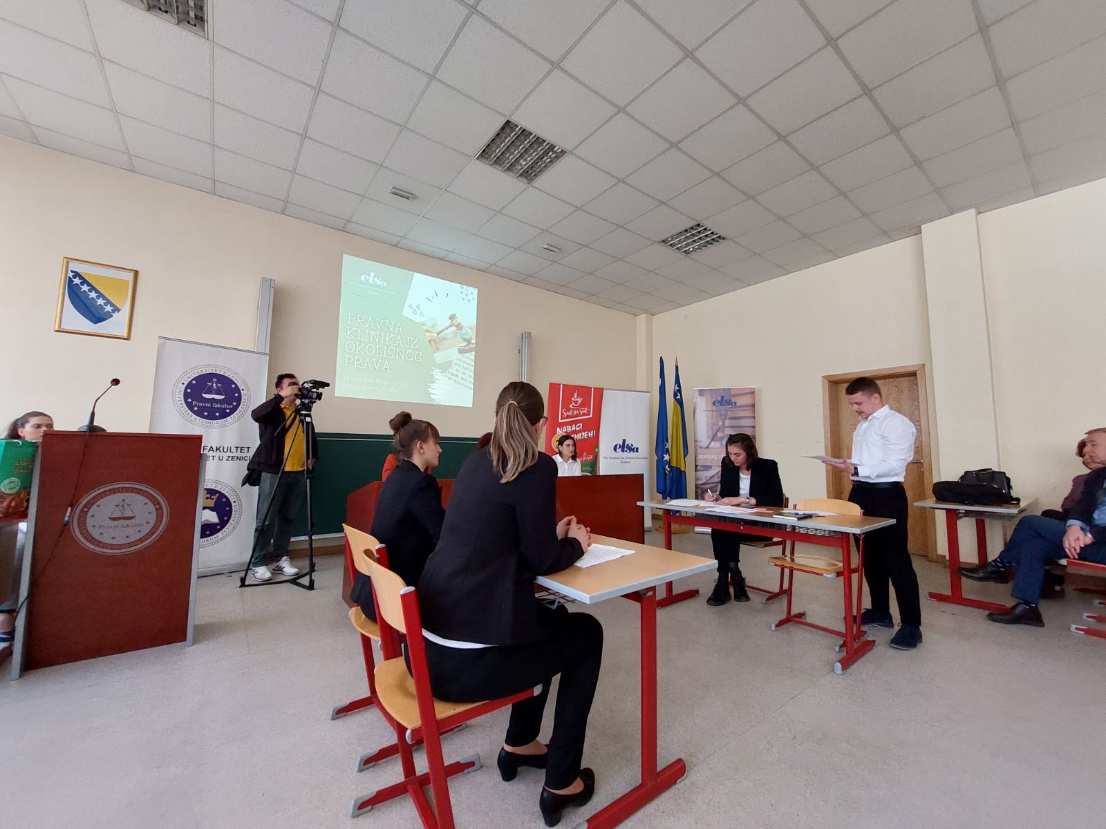 Evropsko udruženje studenata prava ELSA Zenica u saradnji sa Pravnim fakultetom Univerziteta u Zenici, a uz finansijsku podršku Ministarstva za prostorno uređenje, promet i komunikacije i zaštitu okoline Ze-do kantona i kompanije Vispak d.d. Visoko organiziralo je simulaciju suđenja pred Evropskim sudom za ljudska prava u okviru svečane ceremonije zatvaranja projekta Pravna klinika iz okolišnog prava.