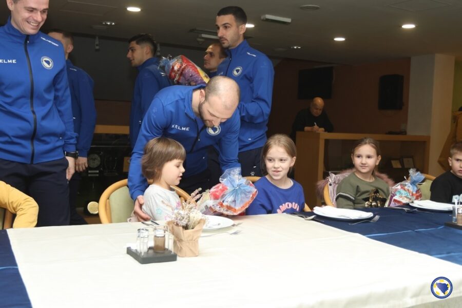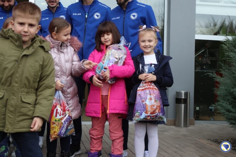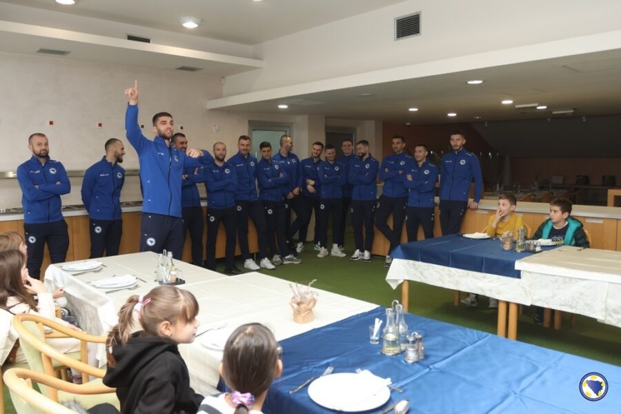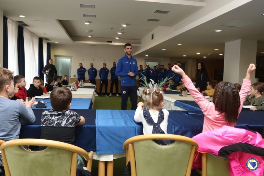 Najmlađi učenici ove škole u pratnji učiteljice Antoanete Vukalović-Perić, danas su uzvratili posjetu najboljim bh. futsalerima koji će sutrašnjim duelom protiv Engleske početi kvalifikacije za plasman na Euro 2026.
