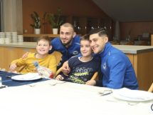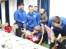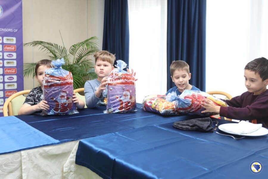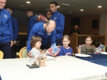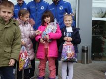 Mališani su bili uzbuđeni druženjem sa reprezentativcima koji su iskoristili njihov dolazak da im još više približe futsal ali i podijele novogodišnje paketiće, kao mali znak pažnje što su im uljepšali ovaj dan.