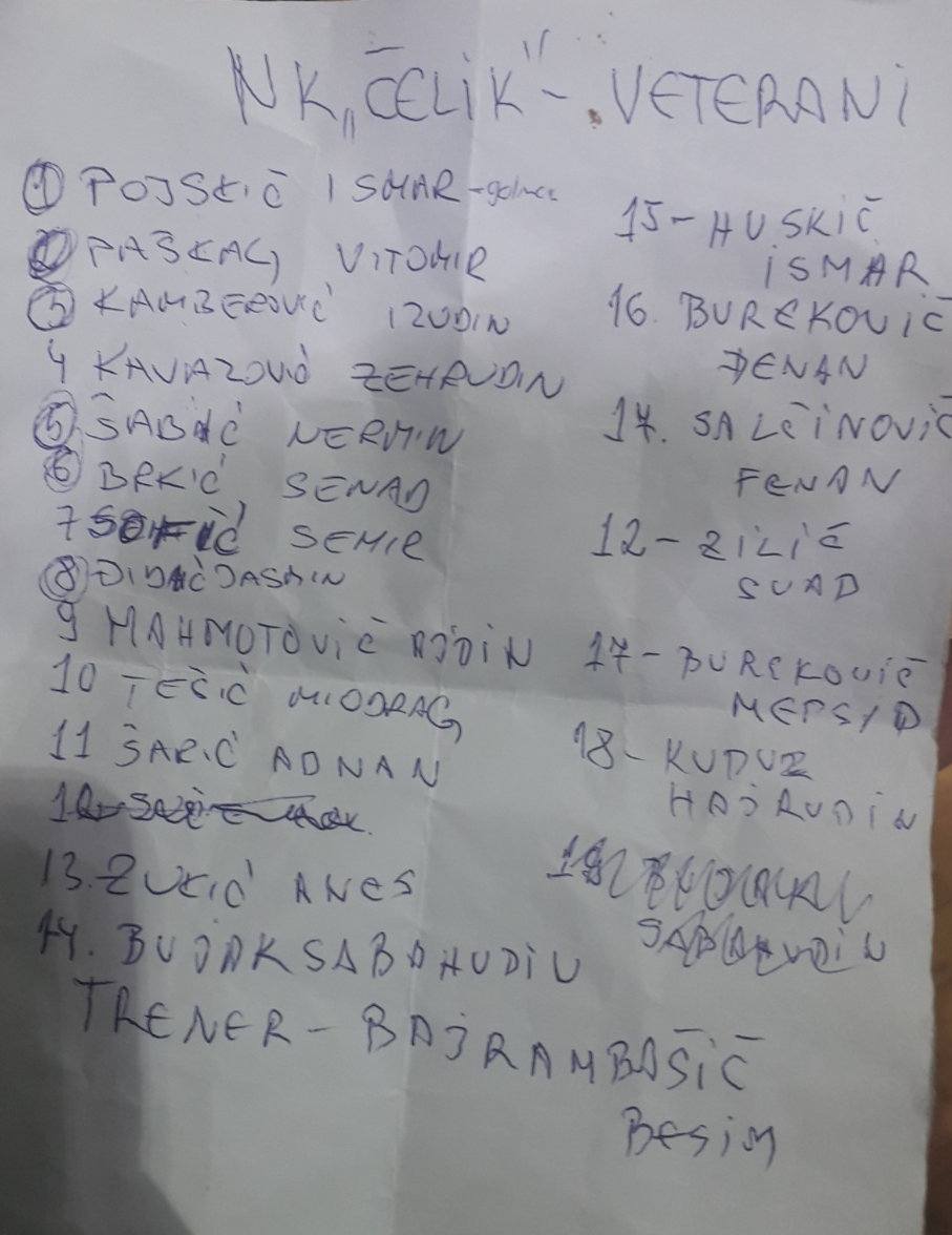 Za selekciju veterana NK Čelik: Pojskić, Paškalj, Kamberović, Šabić, Brkić, Sofić, J.Džidić, Mahmutović, Tešić, Šarić, Zukić, Bujak, Huskić, Dž.Bureković, M.Bureković, Salčinović, Zilić, Kuduz, Bajrambašić.