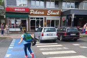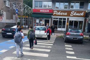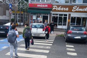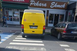 Usprkos činjenici da je vidljiva obližnja škola, da je jasno obilježen pješački prijelaz, da je parkiranjem bukvalno ONEMOGUĆENO da se vide pješaci, a pogotovo djeca zbog visine automobila (kombija, pa i kamiona), to uopće ne ometa prekršioce zakona koji svakodnevno parkiraju nasred “zebre”, direktno dovodeći u opasnost živote djece i drugih pješaka.