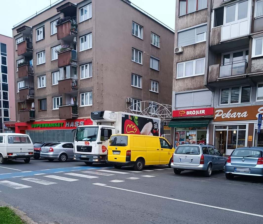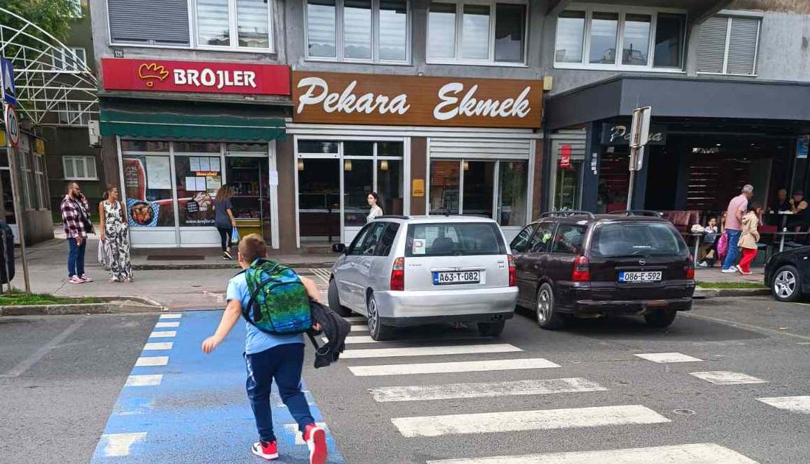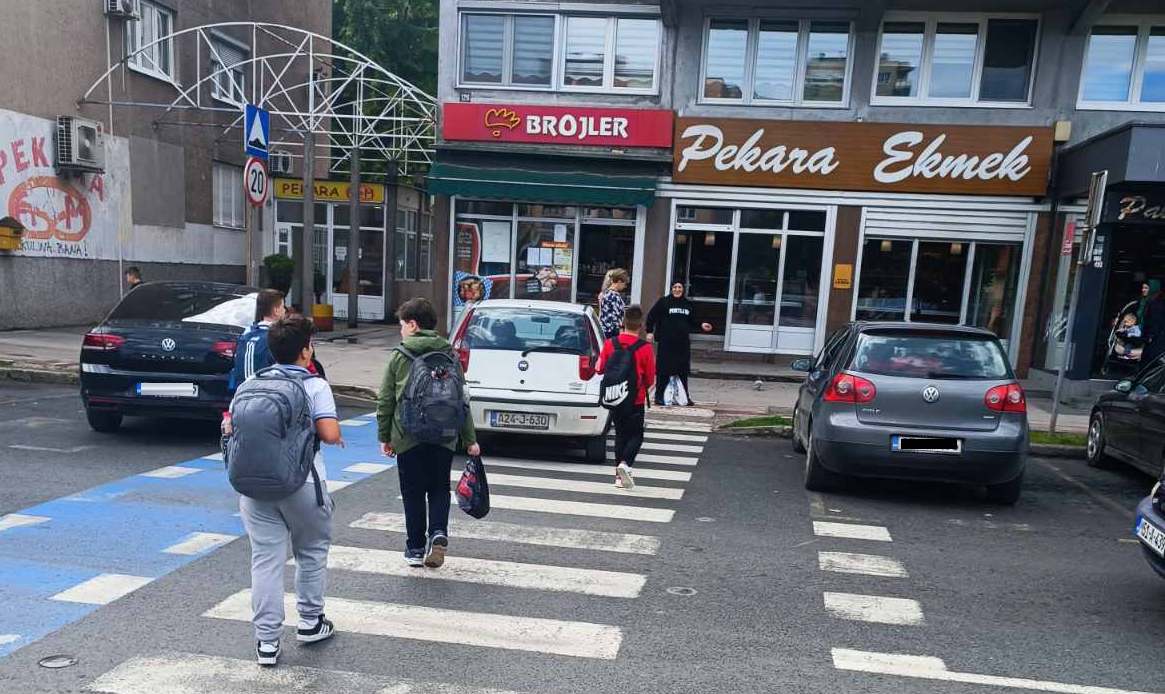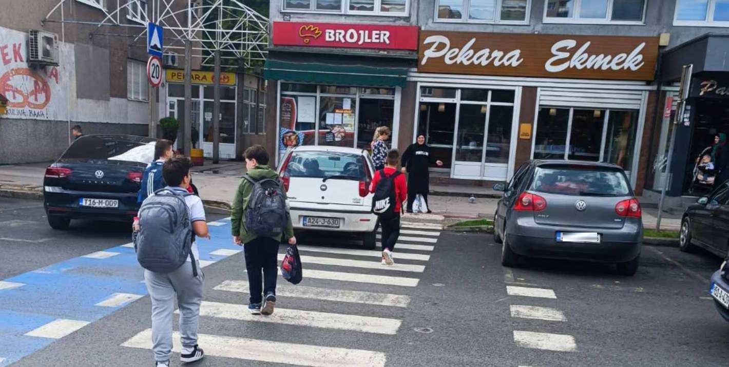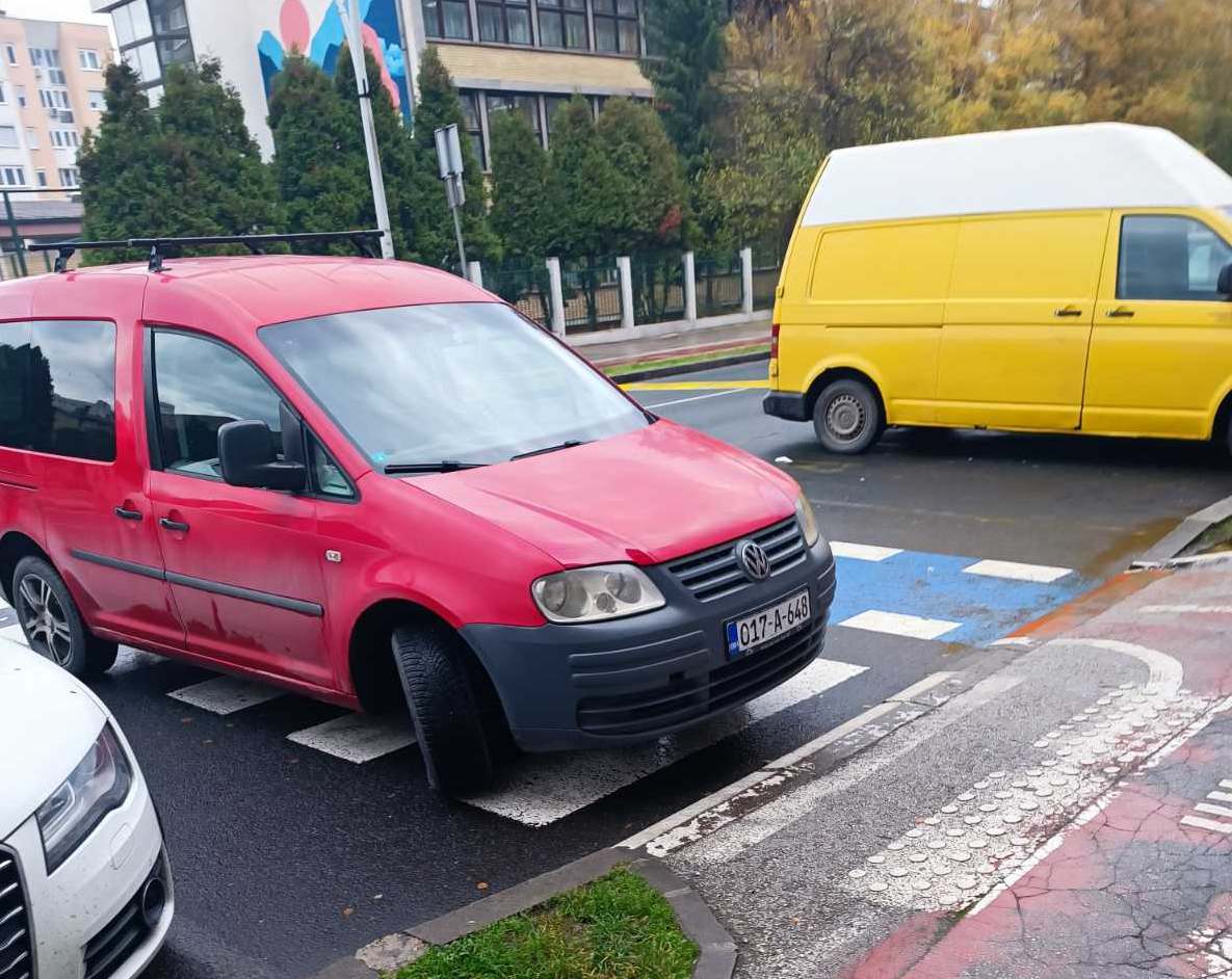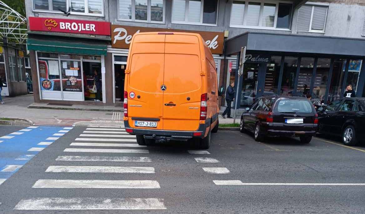 Usprkos činjenici da je vidljiva obližnja škola, da je jasno obilježen pješački prijelaz, da je parkiranjem bukvalno ONEMOGUĆENO da se vide pješaci, a pogotovo djeca zbog visine automobila (kombija, pa i kamiona), to uopće ne ometa prekršioce zakona koji svakodnevno parkiraju nasred “zebre”, direktno dovodeći u opasnost živote djece i drugih pješaka.