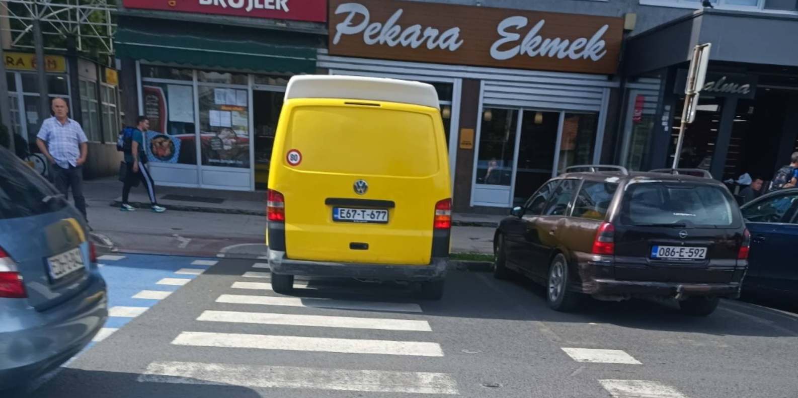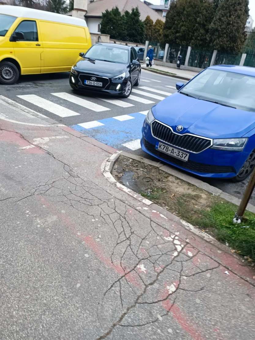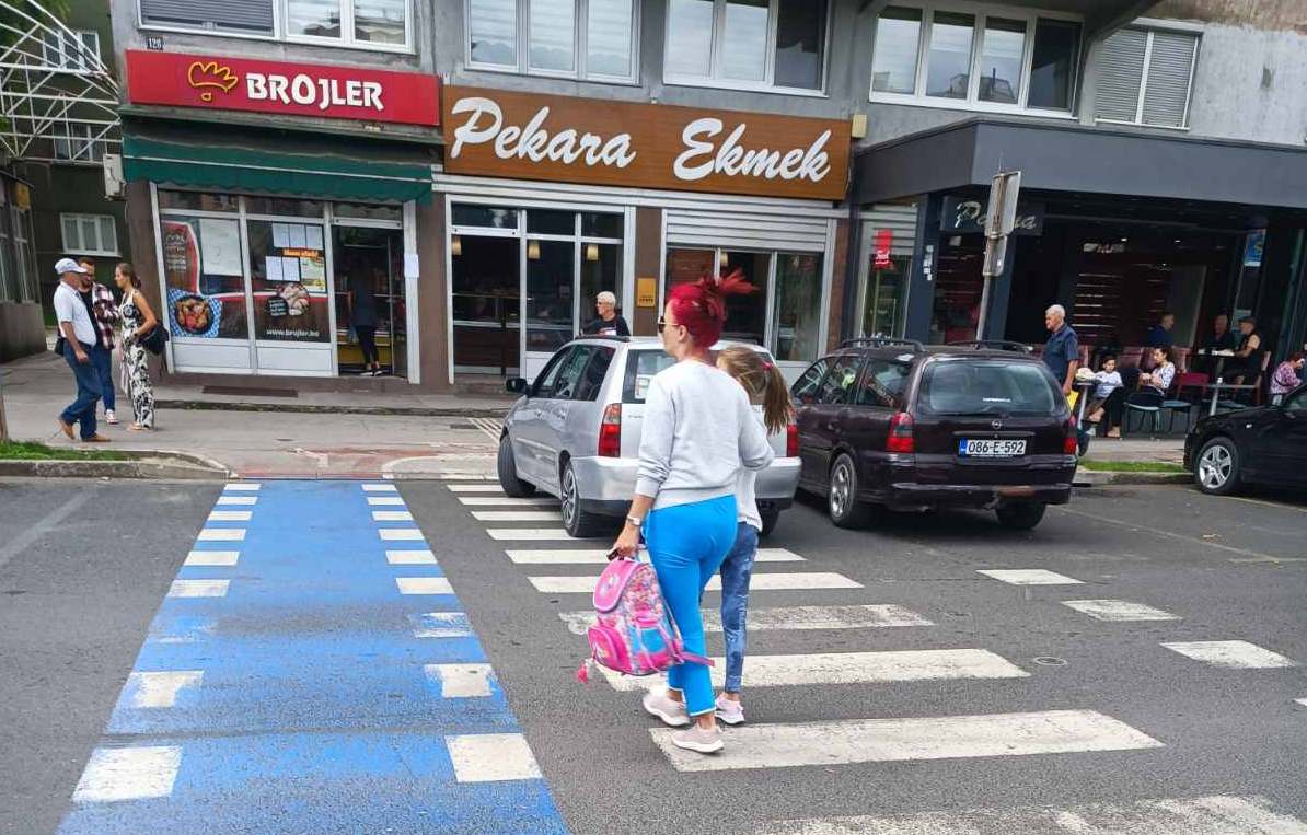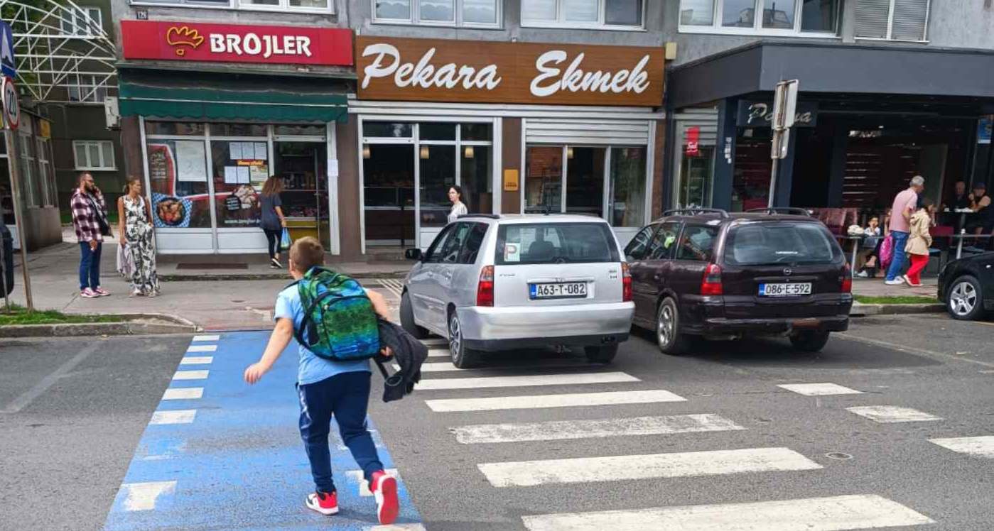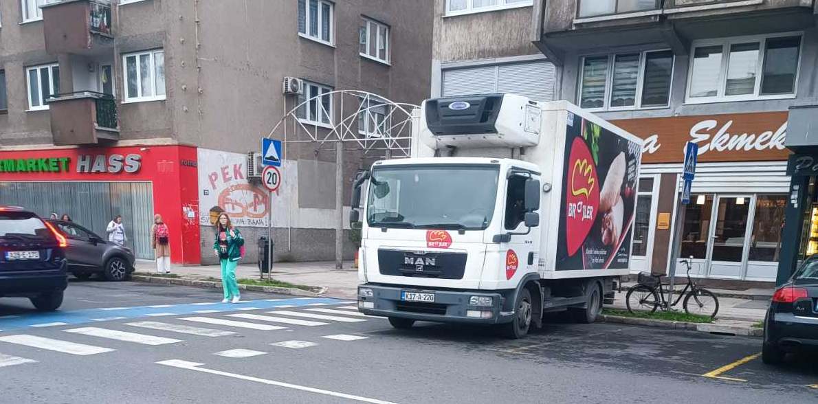 Usprkos činjenici da je vidljiva obližnja škola, da je jasno obilježen pješački prijelaz, da je parkiranjem bukvalno ONEMOGUĆENO da se vide pješaci, a pogotovo djeca zbog visine automobila (kombija, pa i kamiona), to uopće ne ometa prekršioce zakona koji svakodnevno parkiraju nasred “zebre”, direktno dovodeći u opasnost živote djece i drugih pješaka.