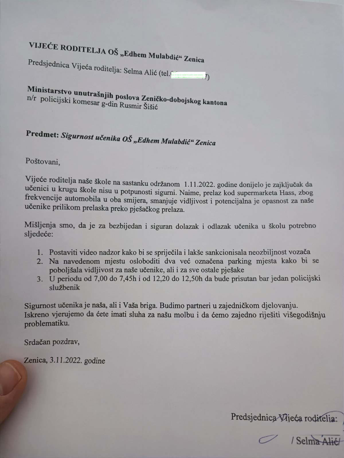 Ljubaznošću nadležnih, objavljujemo dopise poslane prvom policajcu Kantona. I zajedno sa uplašenim roditeljima, čekamo hoće li reakcija nadležnih biti brža od nekog nesavjesnog vozača.