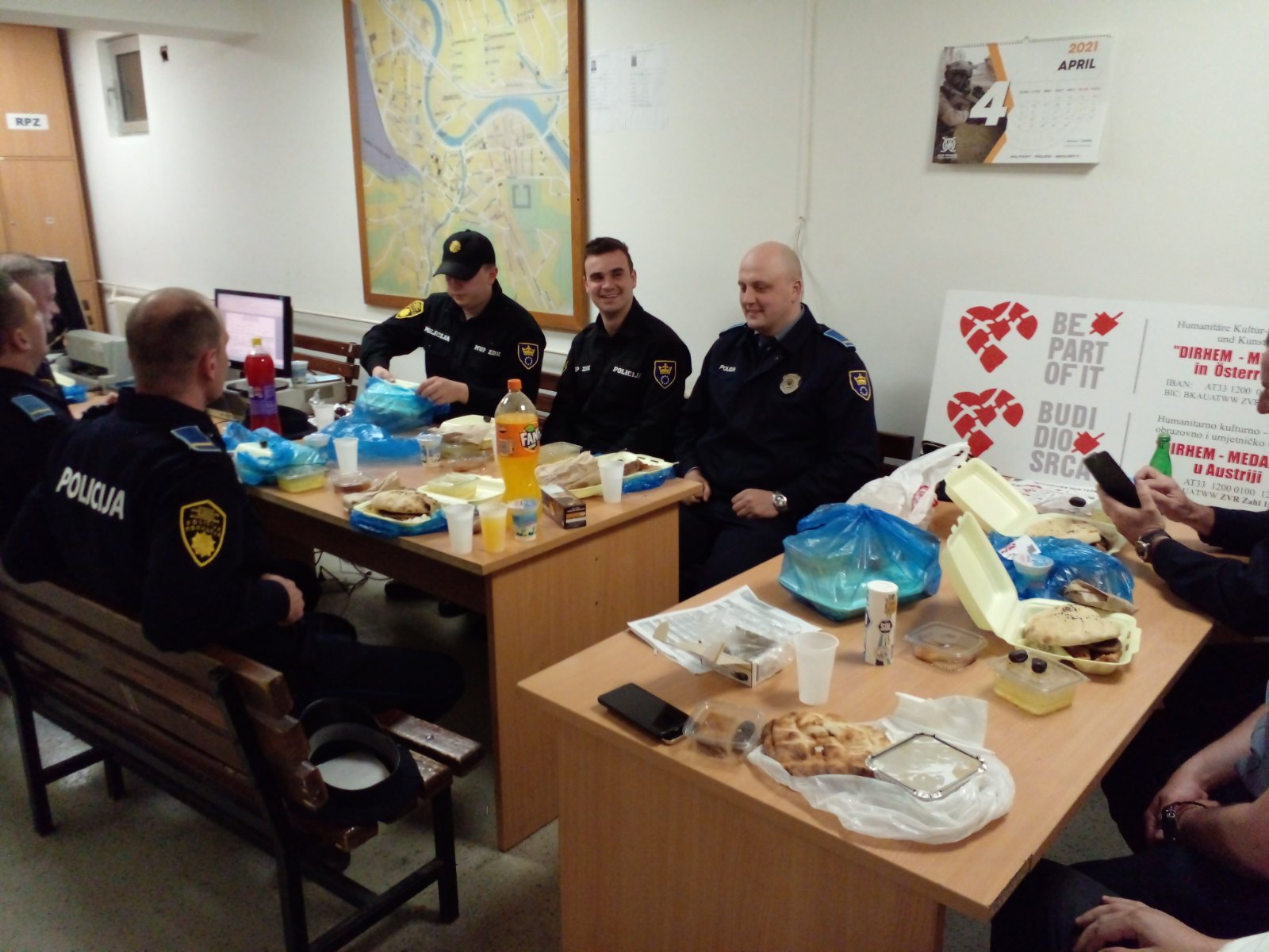 FOTO: Iftar za policajce PU Zenica i Specijalnu policijsku jedinicu – H.U.”Medaljon”iz Austrije je u okviru svoji redovnih aktivnosti u mjesecu Ramazanu pod sloganom “BITI ČOVJEK NIJE TEŠKO” organizovalo iftar preko svog koordinatora Samira Mulića za policajce PU Zenica i Specijalnu policijsku jedinicu Uprave policije MUP ZDK.