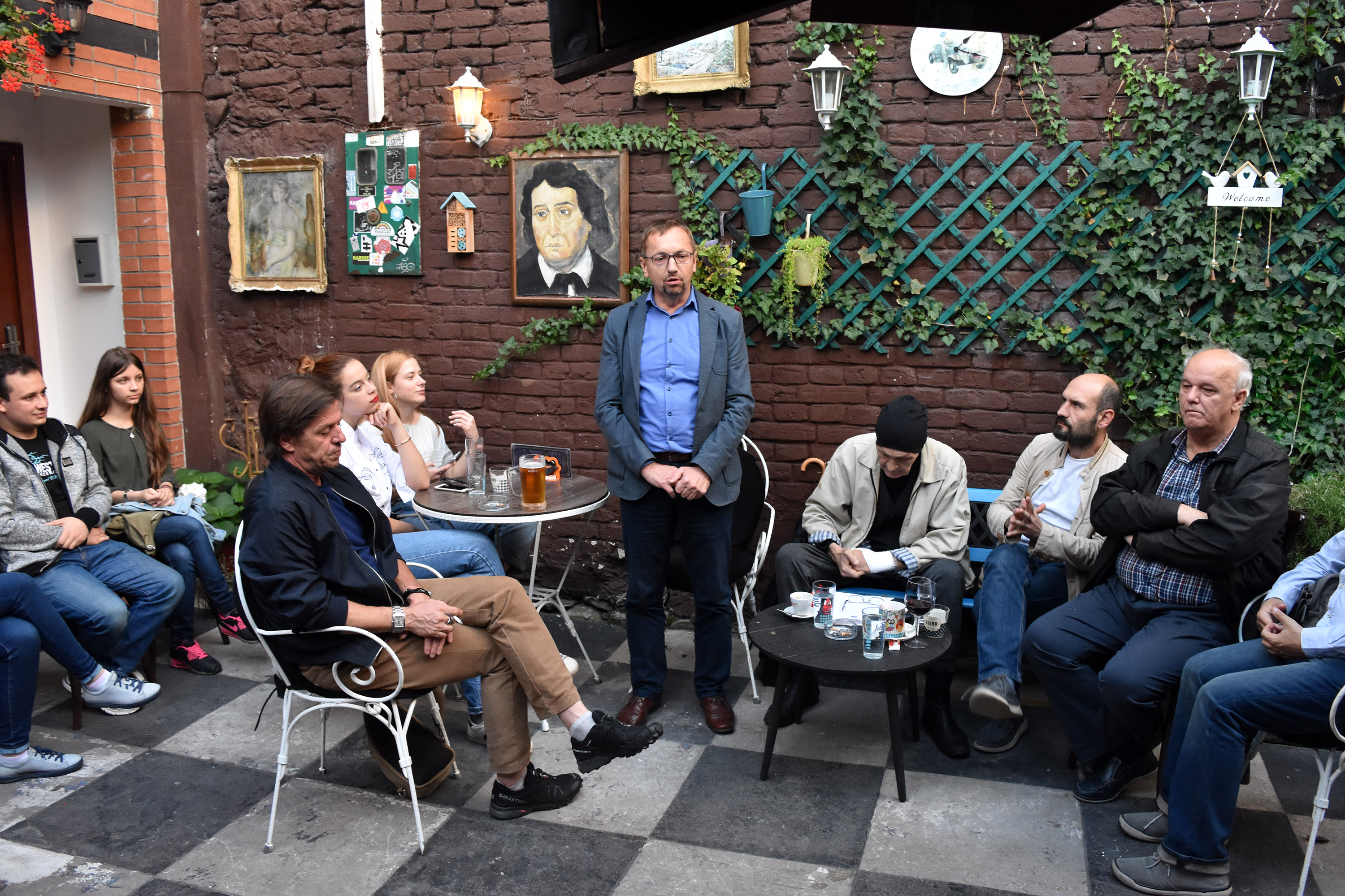 Tema predavanja nosila je naslov Čovjek – filozofski ocrt a o temi je u prepunom kafe baru govorio univerzitetski profesor filozofije prof. dr sc. Spahija Kozlić.