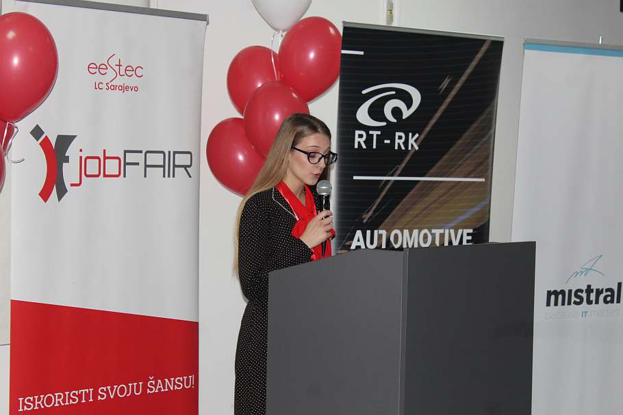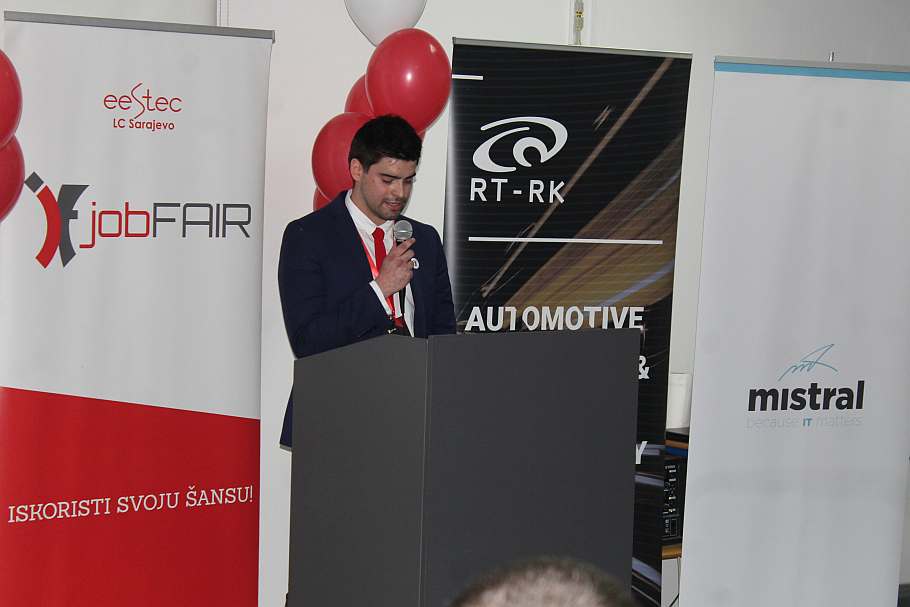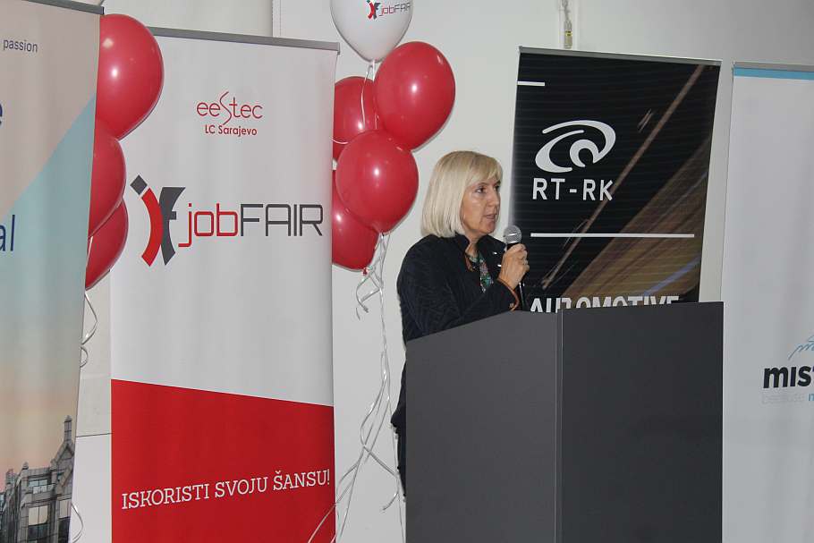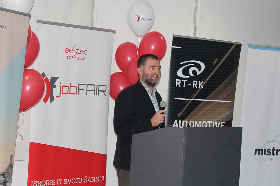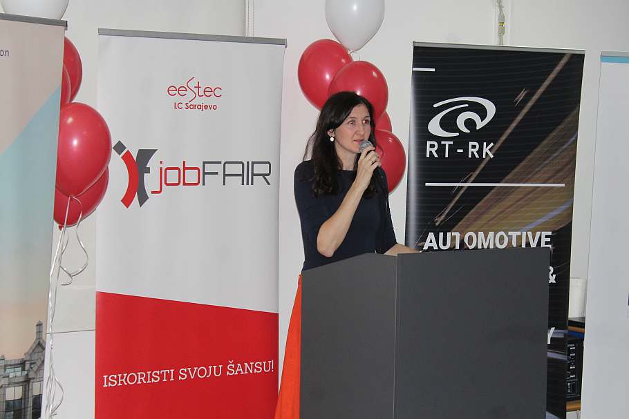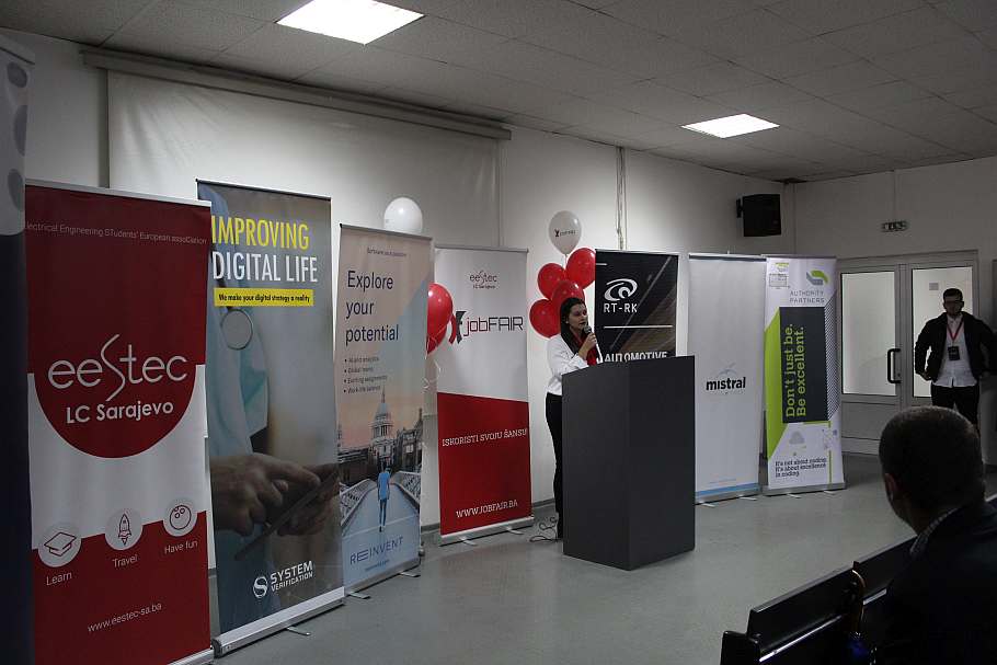 Prisutnima su se obratili: dekan Elektrotehničkog fakulteta u Sarajevu, prof. dr. Jasmin Velagić, Maida Čohodar-Husić, prorektorica za kvalitet, Kadira Šubo ispred kompanija System Verification & Reeinvent, predsjednik Udruženja, Ahmed Selimović i glavna organizatorica, Adna Alić, koja je zvanično otvorila JobFAIR ‘19,.