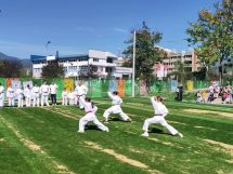 Drugi trening je bio na sportskim terenima ispred Osnovna Škola Edhem Mulabdić – Zenica, gdje smo uradili početne kate pojedinačno i ekipno, te demonstrirali udarce nogama u stomak / mae geri/ i sa strane / mawashi geri/ chudan i jodan. Učenike škole smo počastili sokovima, slatkišima i brošurama.