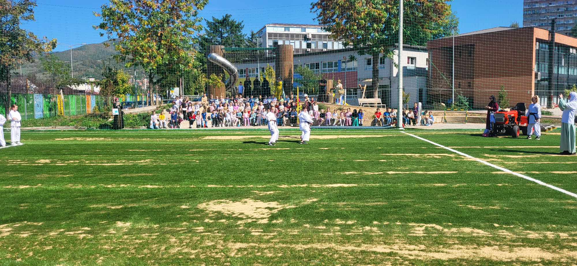 Prvo su mala djeca našeg kluba i učenici navedene škole Bošnjak Hamza, Zeher Abdurrahman, Spahić Besim i Beganović Ahmed uradili učeničke kate TEIKI YOKO SHODAN I HEAN SHODAN, te su dobili ogroman aplauz.