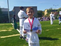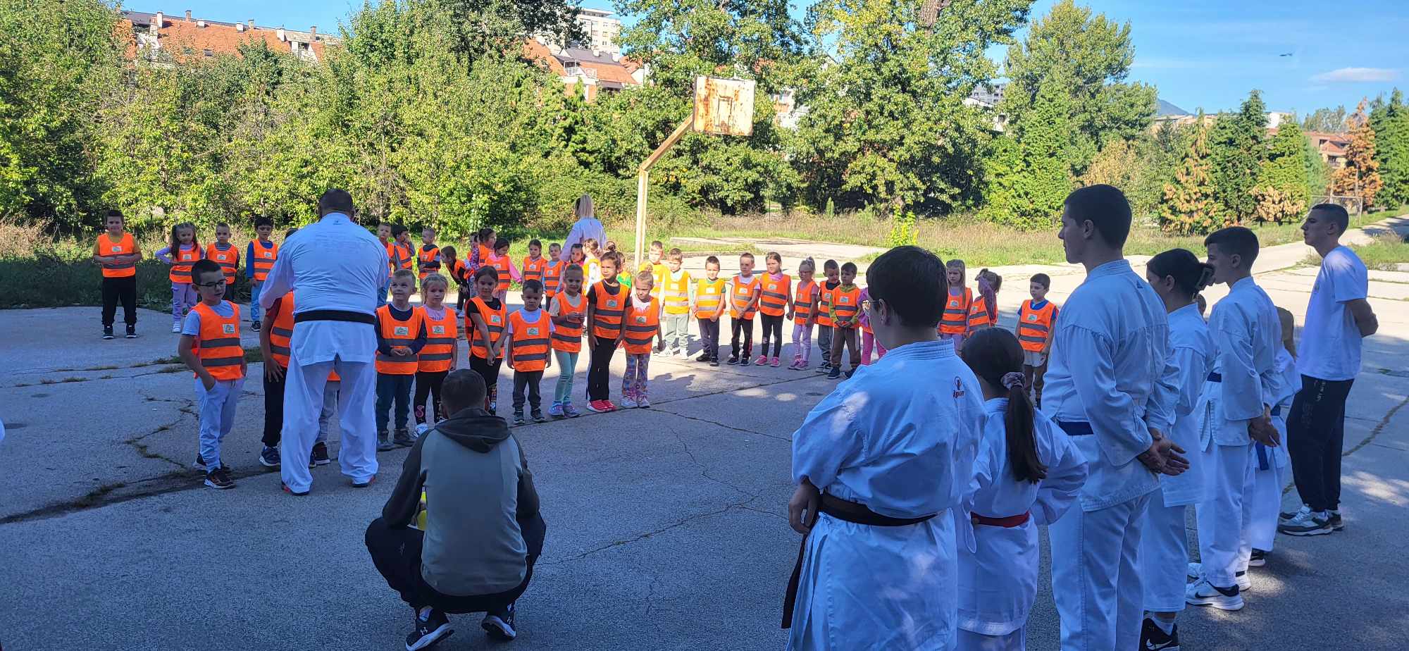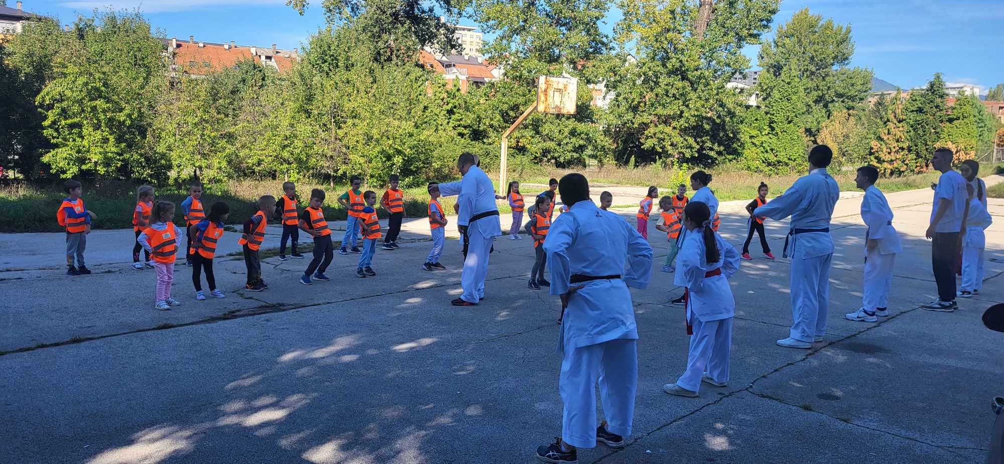 Zajedno smo prošetali, zagrijali i istegli mišiće, zatim vježbali sklapanje pravilno KARATE ŠAKE i radili udarce.