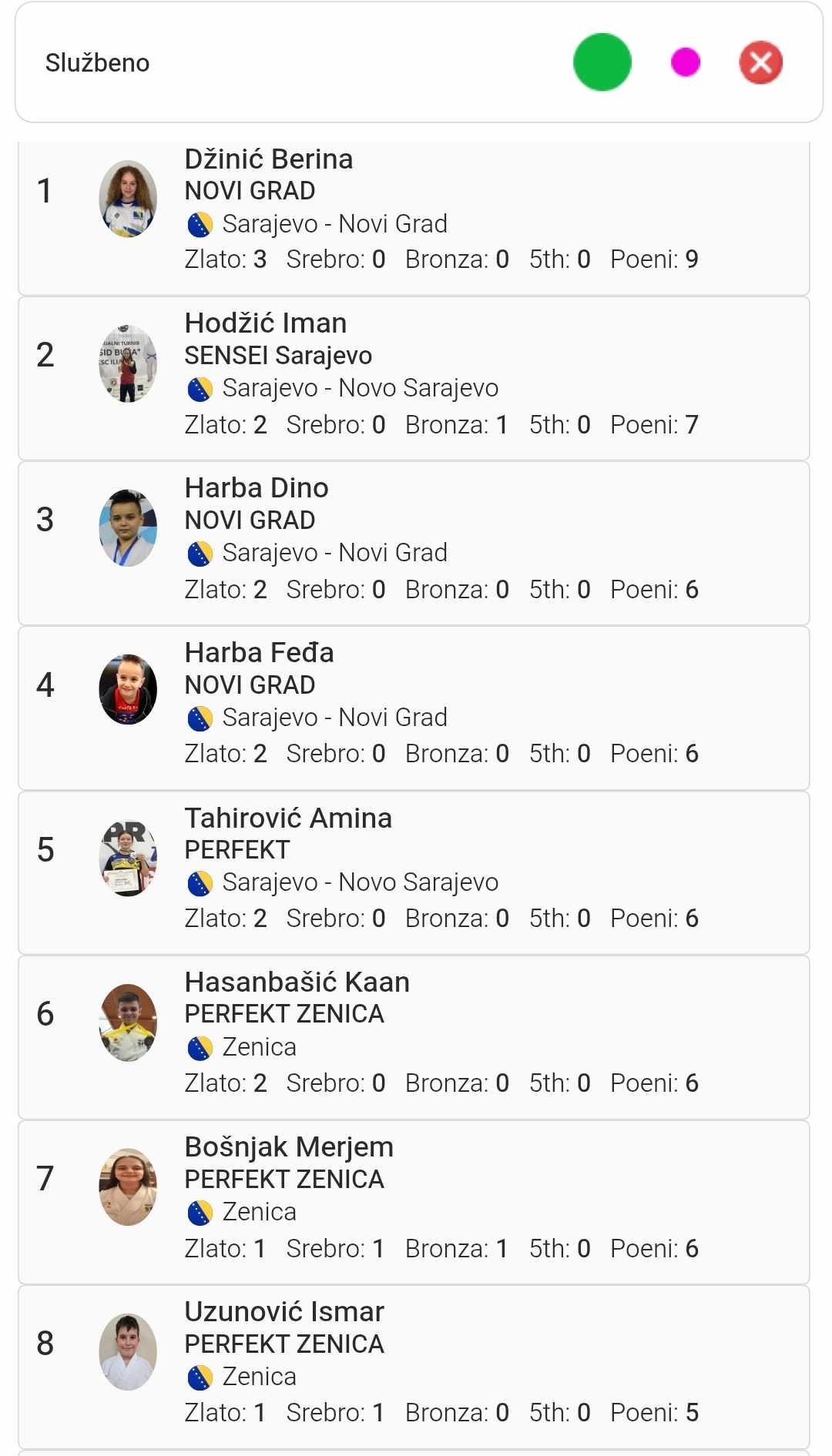Karate klub Perfekt Zenica ostvario je odlične rezultate na 24. Internacionalnom festivalu karatea „Novogradski dani“ koji je održan u Sarajevu u nedjelju, 8. juna 2025. godine. Na ovom međunarodnom turniru učestvovala su 282 takmičara iz 31 kluba iz dvije države, sa ukupno 330 prijava u različitim kategorijama.