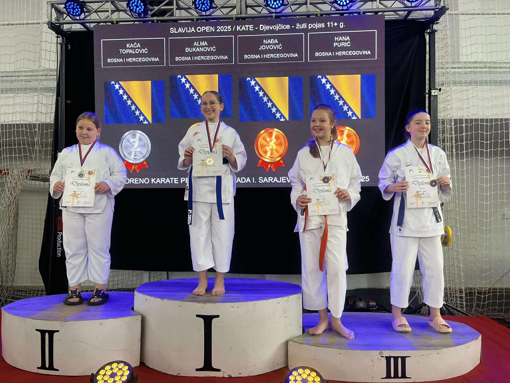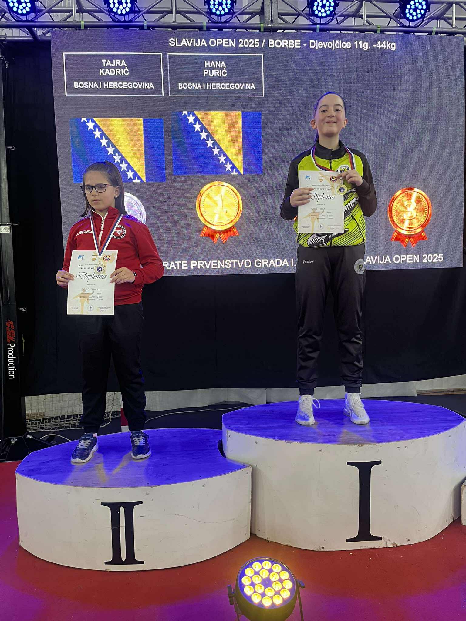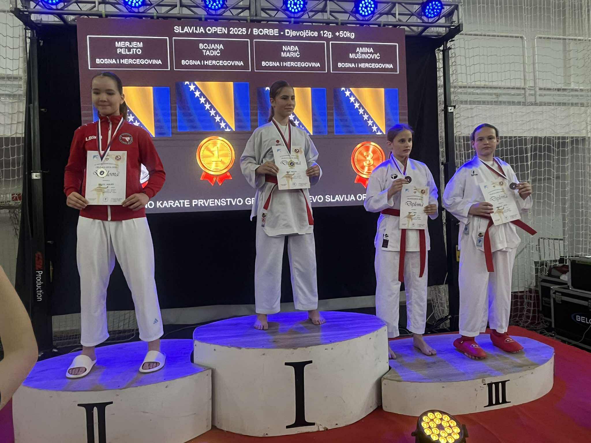 Zlatom su se okitile Merjem Bošnjak, Asja Kovač i Dalia Pinjić u ekipnoj kategoriji kate za djevojčice (12/13 godina). Brončane medalje osvojile su Merjem Bošnjak (borbe djevojčice, 12 godina, +50 kg), Dalia Pinjić (kate djevojčice, 13 godina) i Asja Kovač (borbe djevojčice, 11 godina, -36 kg).