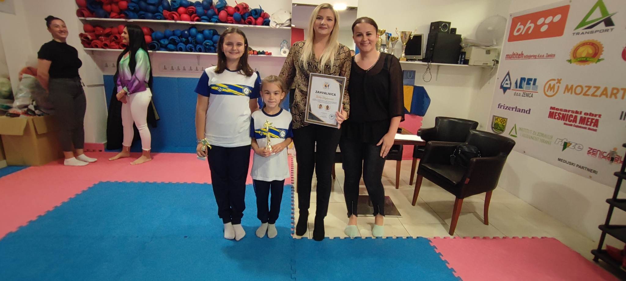 Naša mama Irma je ispred kluba uručila Zahvalnicu gospođi Zeldi Dizdarević za Za podršku i nesebičan doprinos u radu i afirmaciji našeg kluba, te posebno za podršku našim reprezentativkama za odlazak na Balkansko prvenstvo.