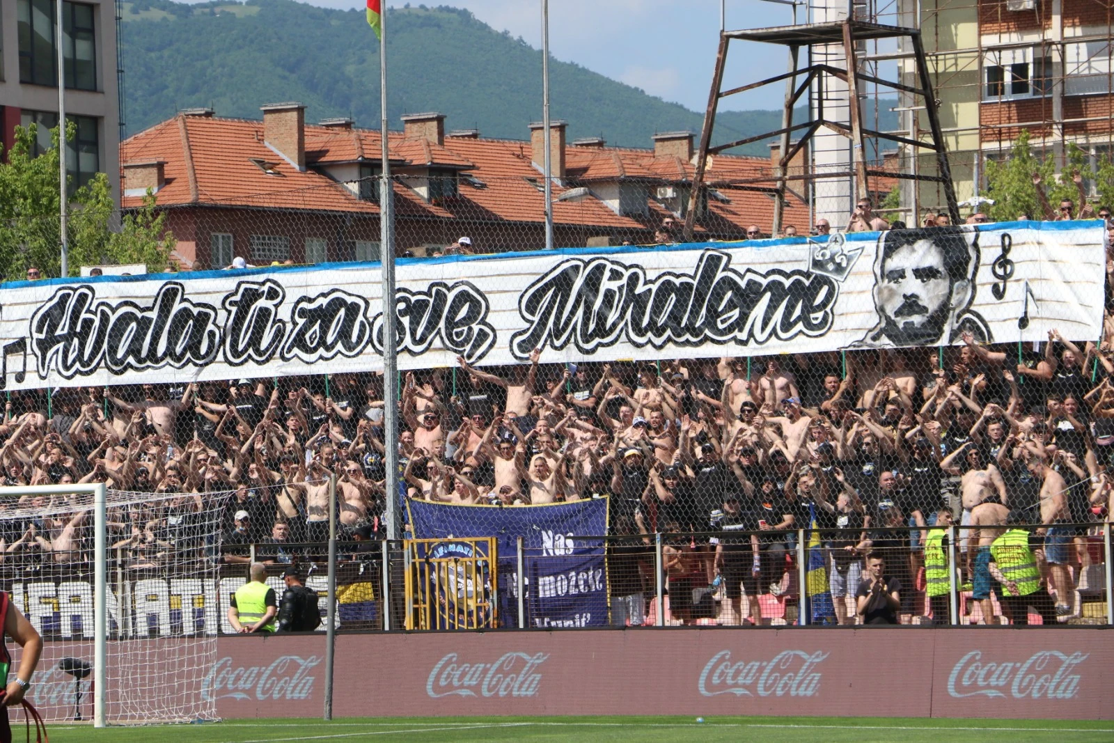 Uprkos velikoj vrućini i temperaturi koja je iznad 30 stepeni Celzijusa, na tribinama zeničkog stadiona nema praznog mjesta.