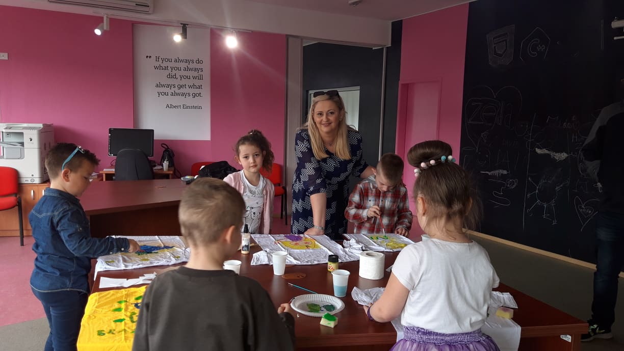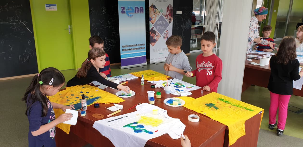 Danas su svi oni koji su željeli naučiti tehnike kreativnog stvaranja posjetili Impulsni kreativni centar Agencije ZEDA i uživali u kreativnom stvaranju, modeliranju balona i oslikavanju majica.