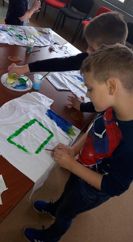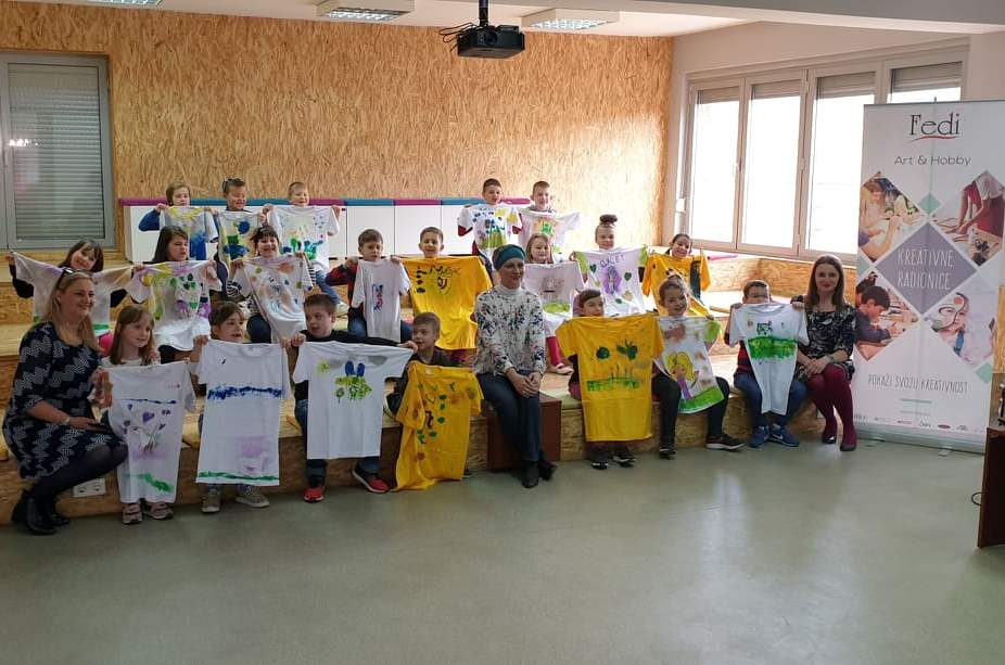 Na drugoj radionici pod nazivom „Oslikaj svoju majicu“, svoje učešće uzeli su učenici I-b razreda Osnovne škole KŠC „Sv.Pavao“ Zenica sa učiteljicom i naučili tehnike oslikavanja majica.