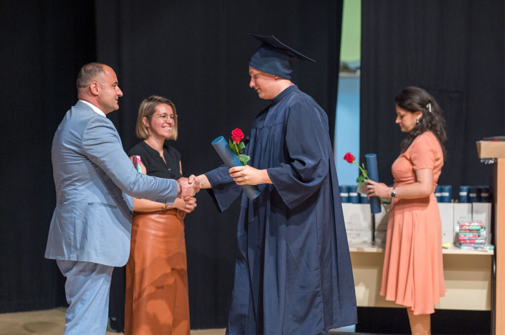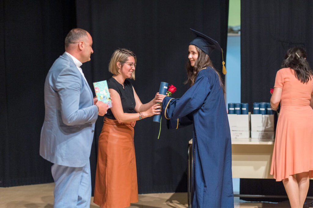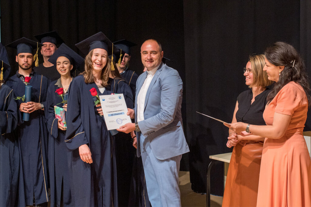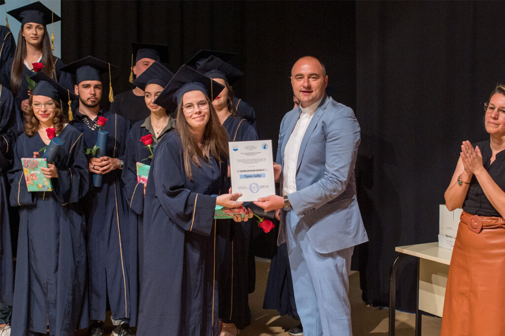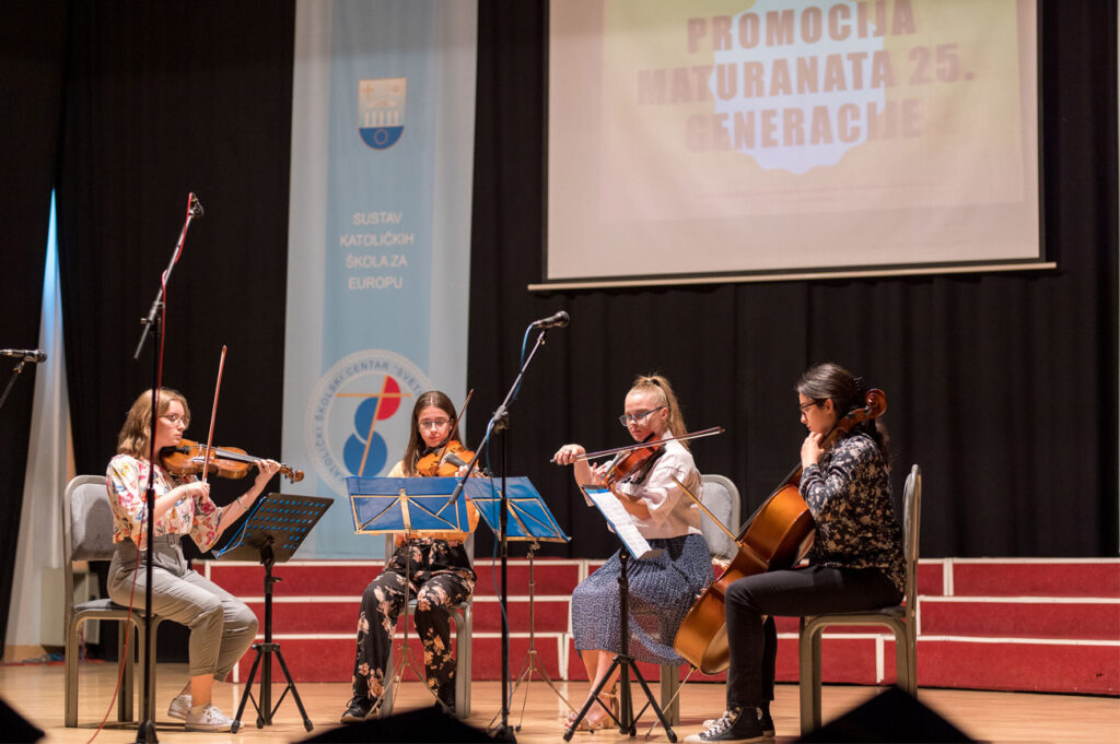 Dana 17.6.2022. godine u amfiteatru našeg Centra upriličili smo svečanu ceremoniju dodjele diploma XXV. generaciji maturanata naše Gimnazije. Promociji su prisustvovali nakon dvije godine osim maturanata i profesora, i roditelji i ostali gosti. Ovom prigodom najuspješnijim maturantima uručili smo posebne nagrade, a naš ravnatelj vlč. Vlatko Rosić uručio je dva priznanja „Učenica s posebnim priznanjem“ Tajana Salkić, IV.a i Ajla Ahmetović, IV.b, i priznanje „Učenica generacije“ Sara Dautbegović, IV.b. Svim našim maturantima želimo puno uspjeha u daljnjem školovanju i u svijetu odraslih!