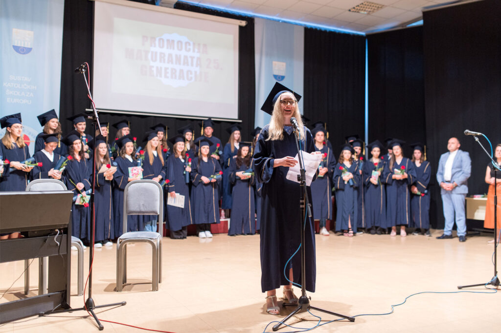 Prvo bih željela pozdraviti ravnatelja našega Centra, direktoricu, sve profesore, moje prijatelje iz generacije, njihove roditelje i sve prisutne koji su svojim dolaskom uljepšali ovu posljednju svečanost 25. generacije maturanata Opće gimnazije Katoličkog školskog centra „Sv. Pavao“.