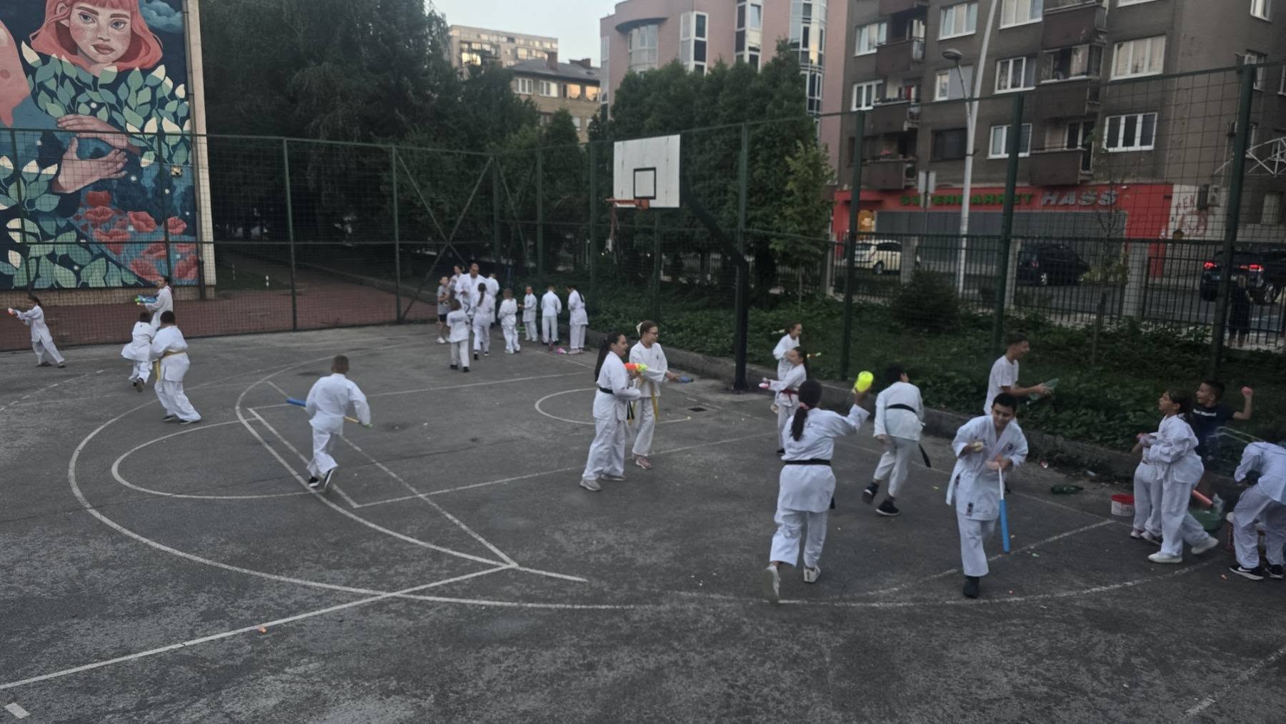 Treneri, roditelji i djeca došli su pripremljeni s kantama i bocama punim vode, te pištoljima i puškama na vodu, pretvarajući redovan trening u pravu sportsku i porodičnu zabavu.