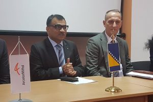 FOTO: Ministar Sinanović i Biju Nair- 32 učenika Srednje mješovite škole “Mladost” i Industrijske škole na praksi u Arcelor Mittal – U prostorijama kompanije ArcelorMittal Zenica održan je sastanak Ministra za obrazovanje, nauku, kulturu i sport, Mensura Sinanovića sa menadžmentom Kompanije i učenicima Mještovite srednje industrijske škole Zenica i JU Srednje mješovite škole „Mladost“ Zenica, koji od drugog polugodišta 2017./2018. školske godine obavljaju stručnu praksu u ovoj kompaniji.