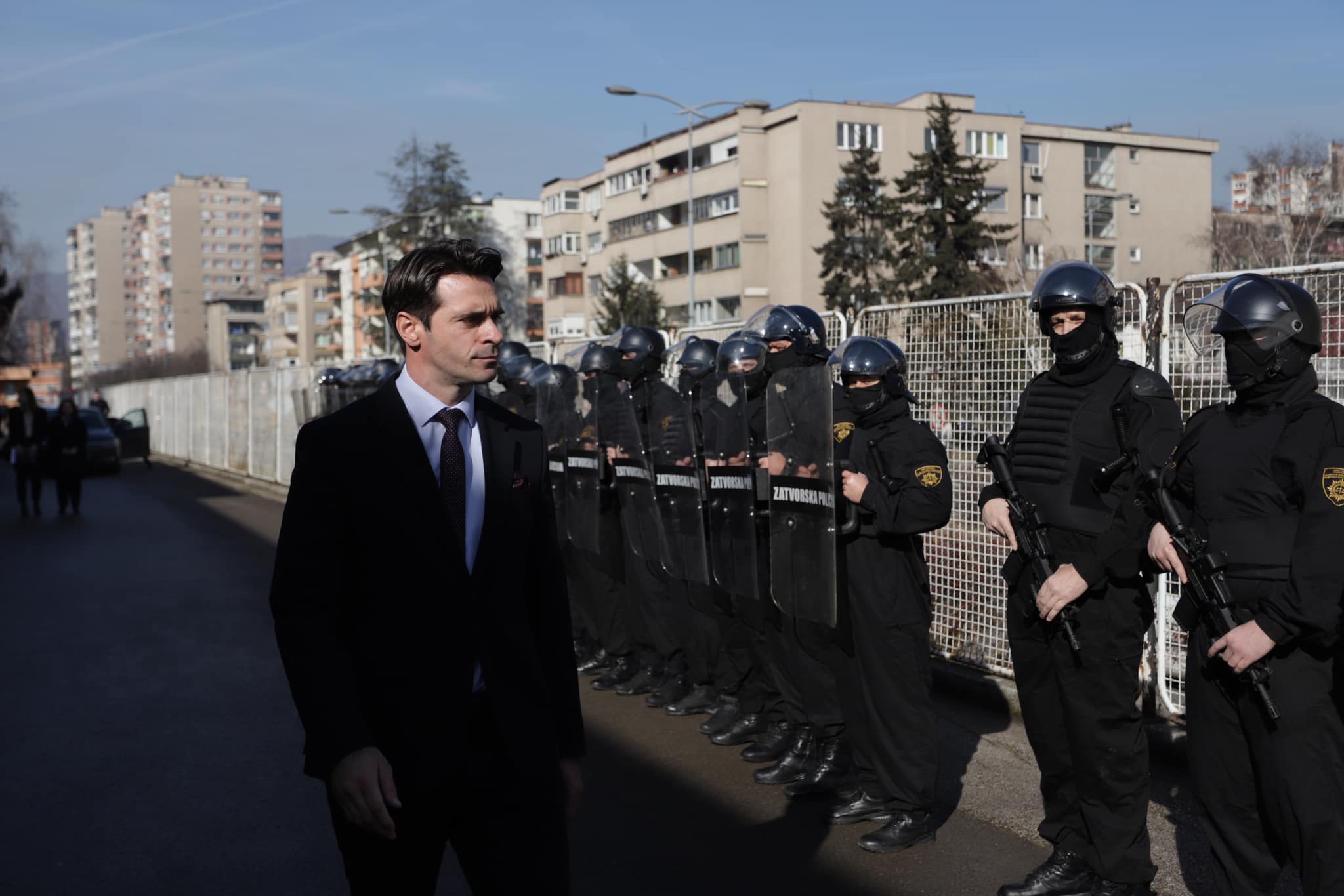 Danas je u KPZ-u Zenica direktor Rusmir Isak svečano postrojio specijalnu zatvorsku jedinicu u čast posjete ministra pravde, Vedrana Škobića.