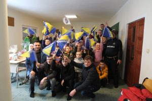 Za 46-šestero djece smo pripremili i poklonili slatke paketiće i zastave BiH. Obećali smo im da ćemo ponovo doći i za njih organizovati prigodan kulturno-umjetničko program.