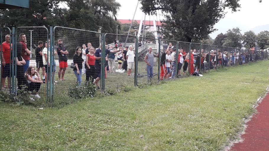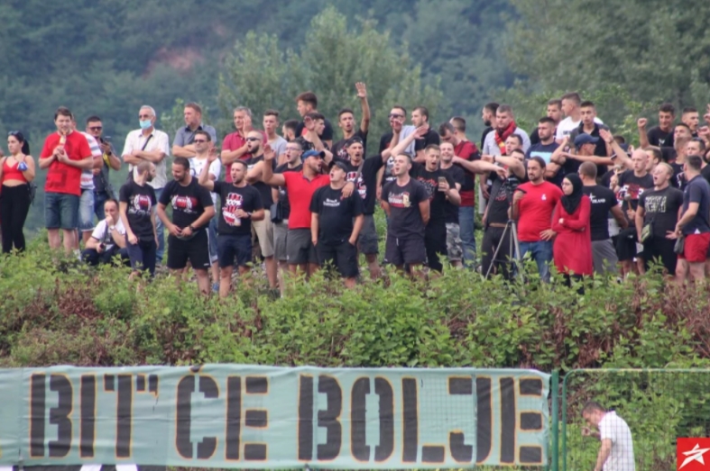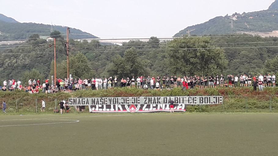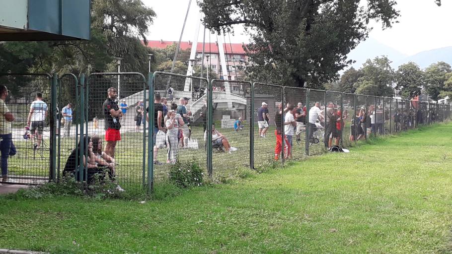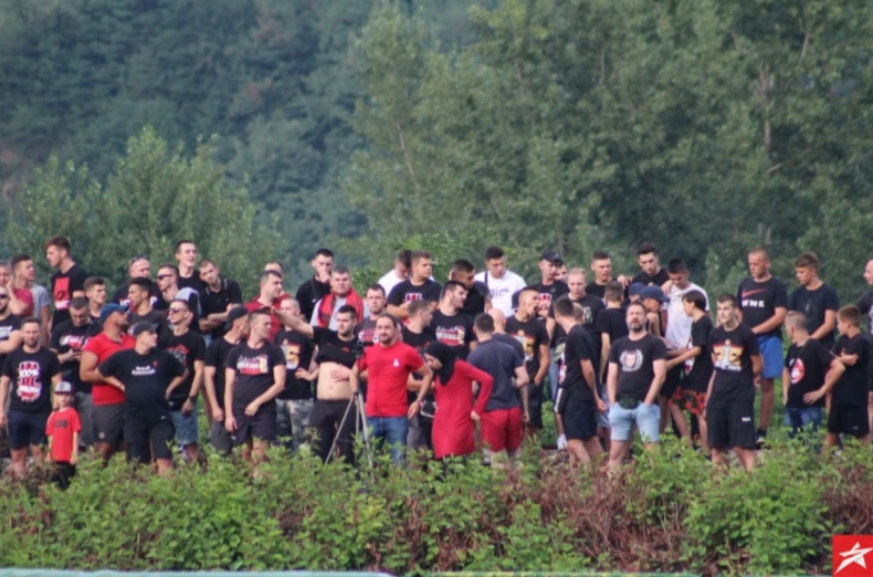 Iako na nogometne terene nije dozvoljen dolazak gledalaca, to nije spriječilo da se danas oko stadiona i pored pruge okupi skoro 1.000 gledalaca, uglavnom navijača Čelika, koji su došli podržati crno-crvene.
