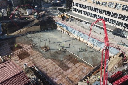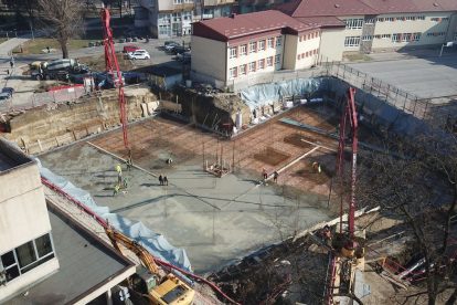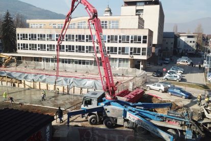 Danas se izvode radovi na betoniranju temeljne AB ploče, a planirano je da isti budu završeni do kraja dana.