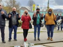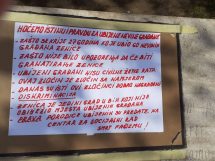 Na jednom dijelu spomenika zatičemo dvije zalijepljene poruke sa tekstovima pisane ručno, koje vam prikazujemo u foto galeriji. Prije početka ove manifestacije jedan od roditelja, koji je izgubio dijete u ovom masakru, pokazao nam je dvodjelni spomenik civilnim žrtvama  koji je u očajnom stanju i čija su slova sa imenima žrtava i kratkim tekstom u vezi masakra izlizana, da se gotovo ništa i ne može pročitati o čemu se radi. Kaže, da po spomeniku djeca trčkaraju, a spomenik je postavljen pod uglom od 15-20 stepeni. On predlaže da se spomenik postavi okomito i da se slova obnove, jer je zub vremena učinio svoje. Evo prijedloga za gradsko vijeće da se ovo popravi i trajno obilježi i da se nikad i nikom ne dogodi.